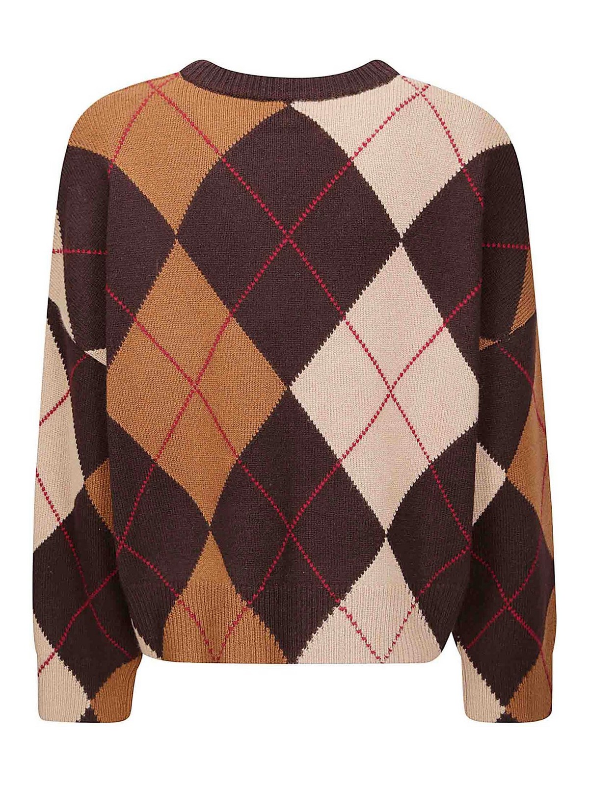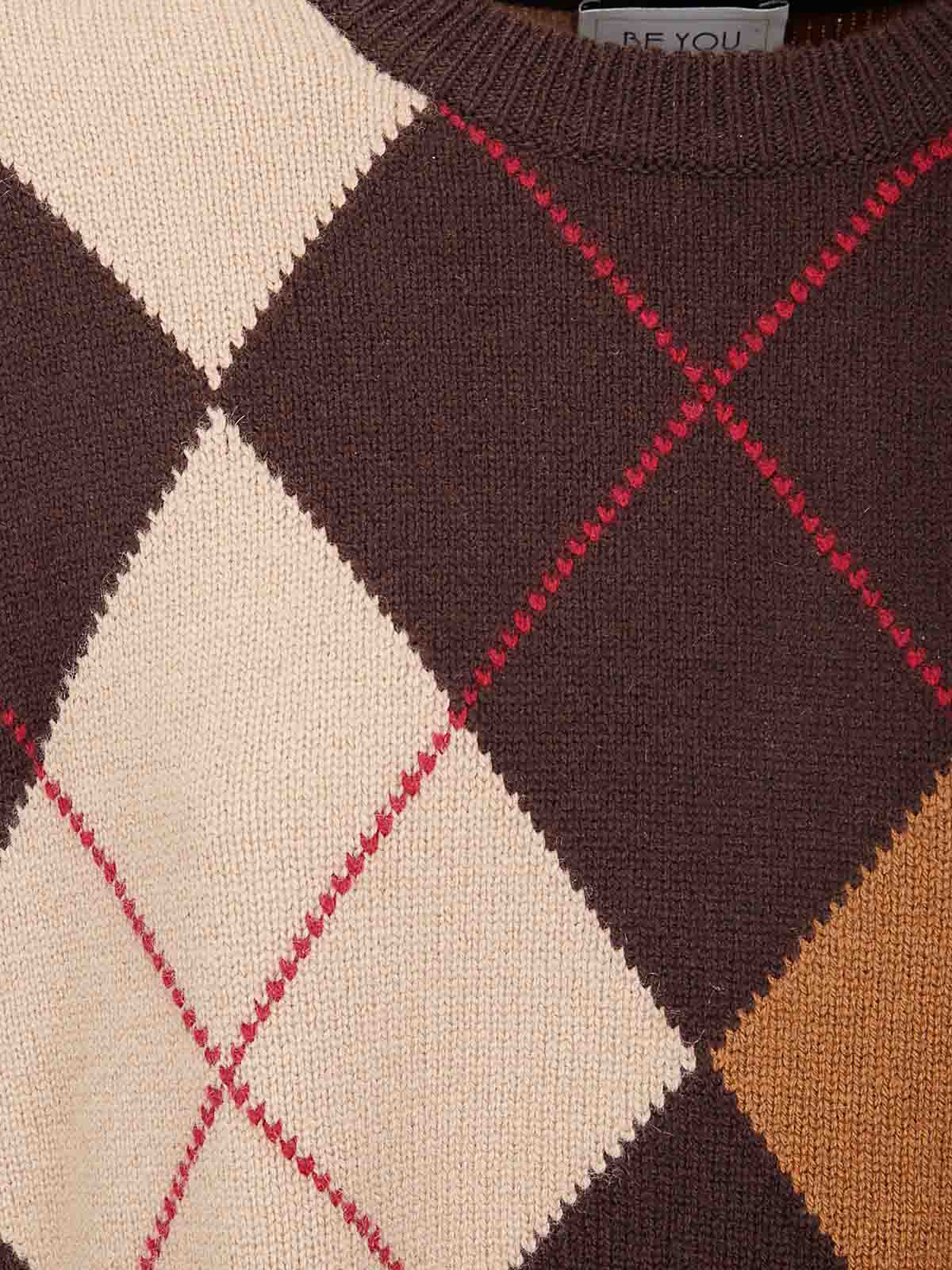 Soft cashmere sweater with diamond pattern, round neck, short and comfortable fit.