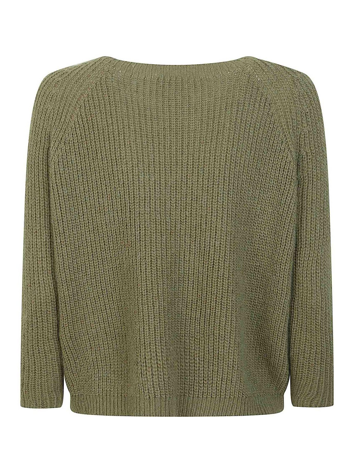 Ribbed mohair blend sweater, green colour, ribbed crew neck and hem, raglan sleeves,