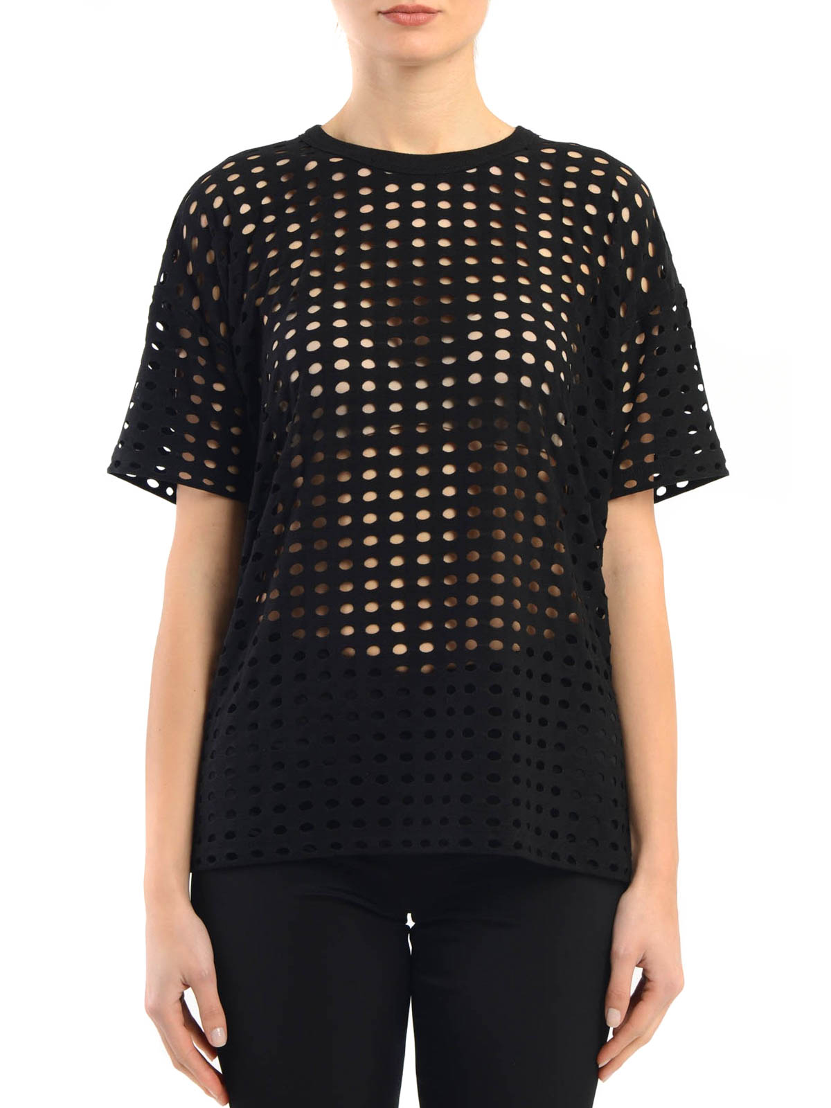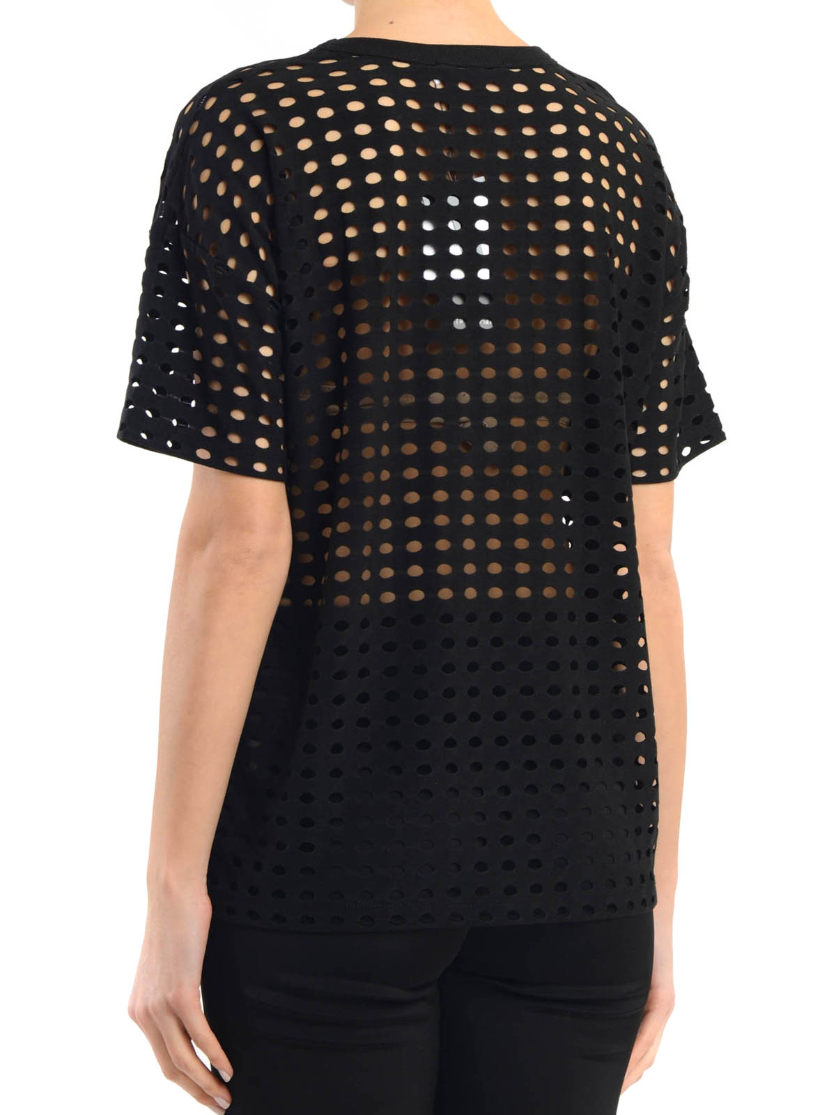 Crew neck jacquard T-shirt detailed with all-over cut-out design and drop shoulder.
