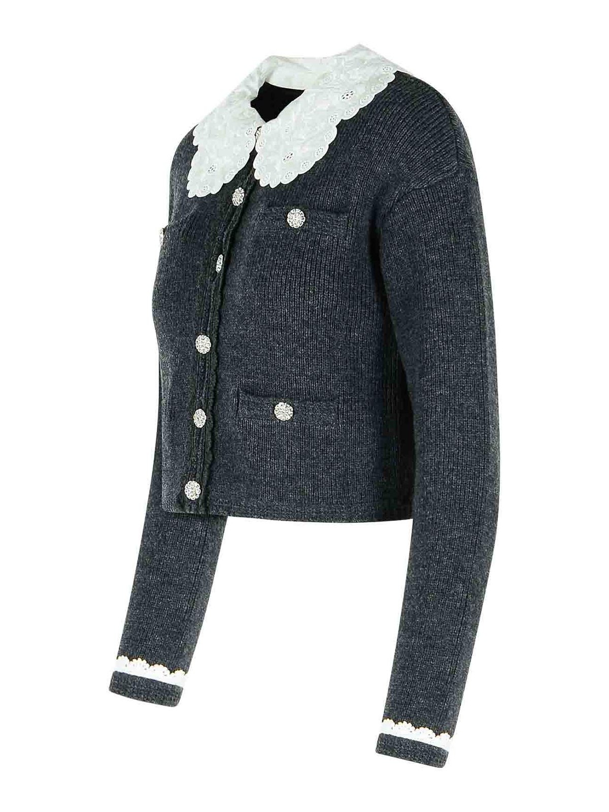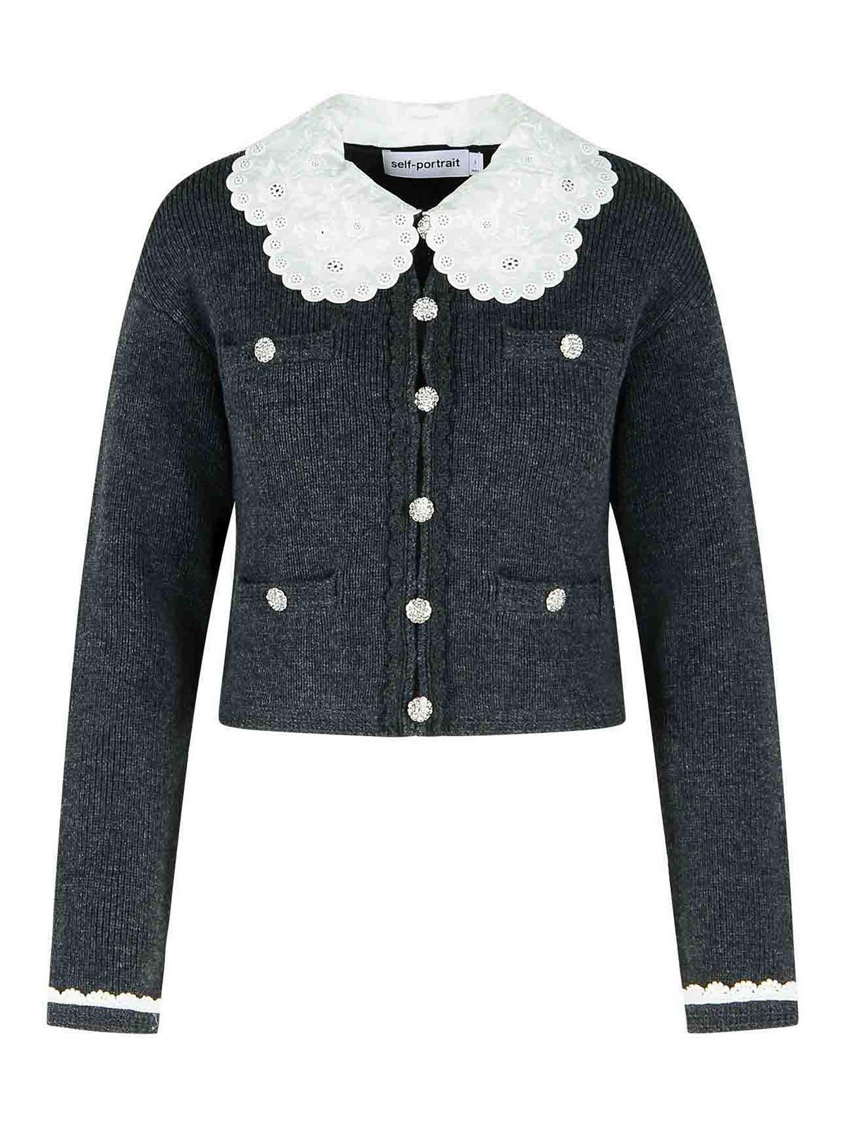 Self Portrait: cardigans - Dark Grey Wool Blend Crop Cardigan