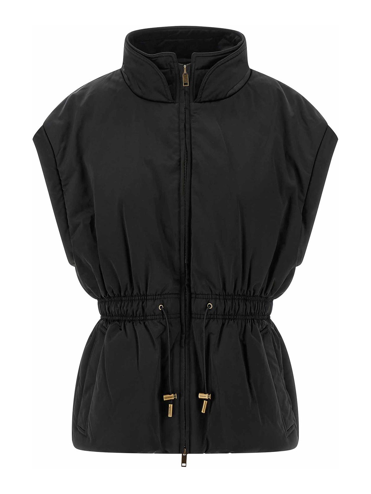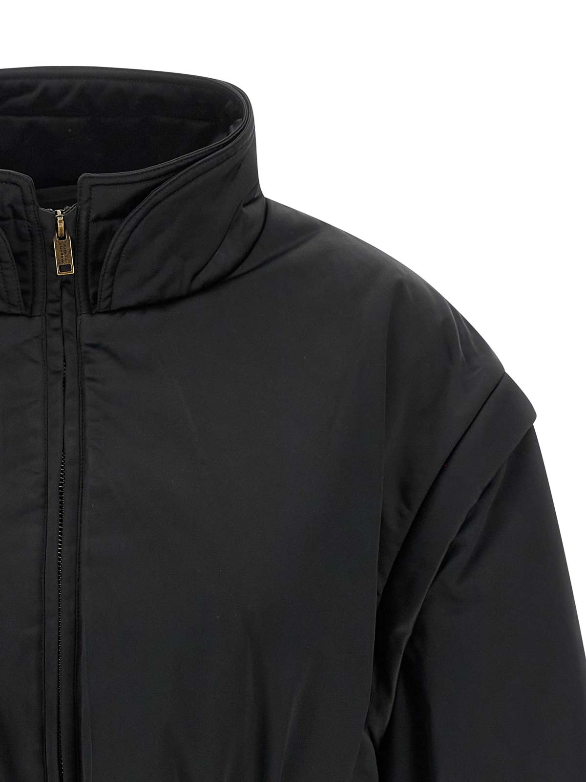 dastyni' quilted and padded satin jacket, double high collar, front zip closure, drawstring elastic waistband, pockets, long sleeves with removable elastic cuffs