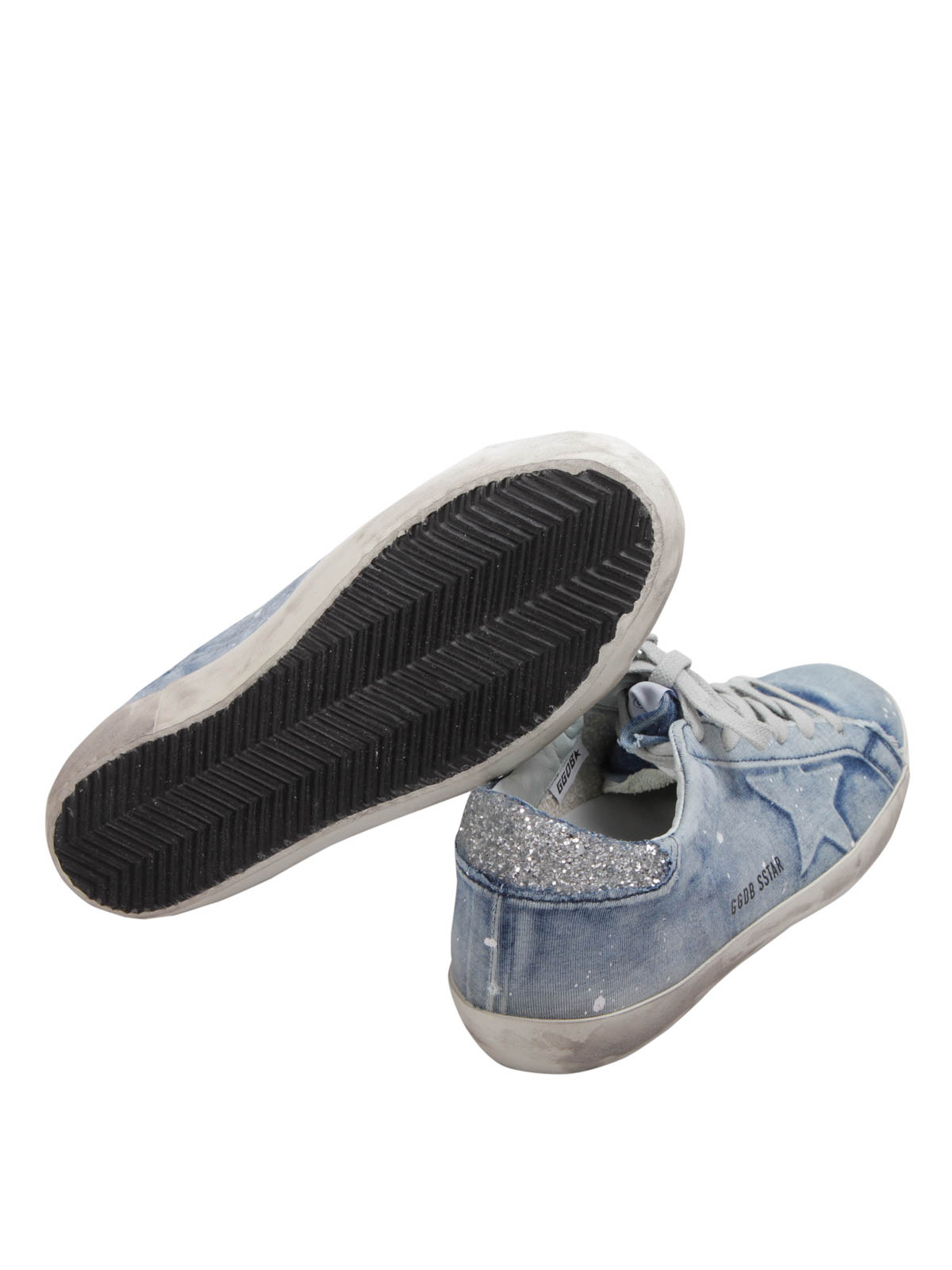 GOLDEN GOOSE: trainers - Denim-leather Super Star sneakers