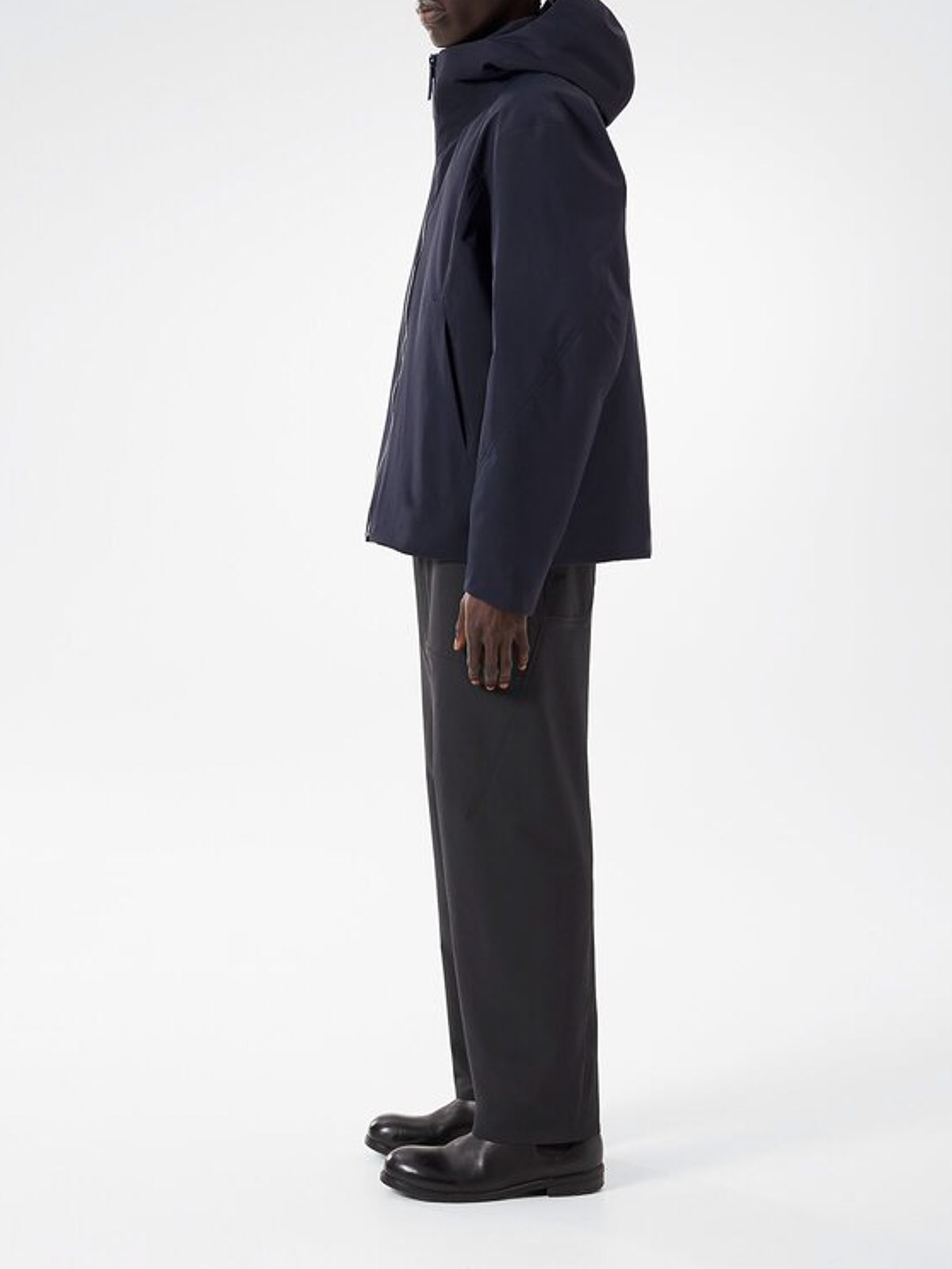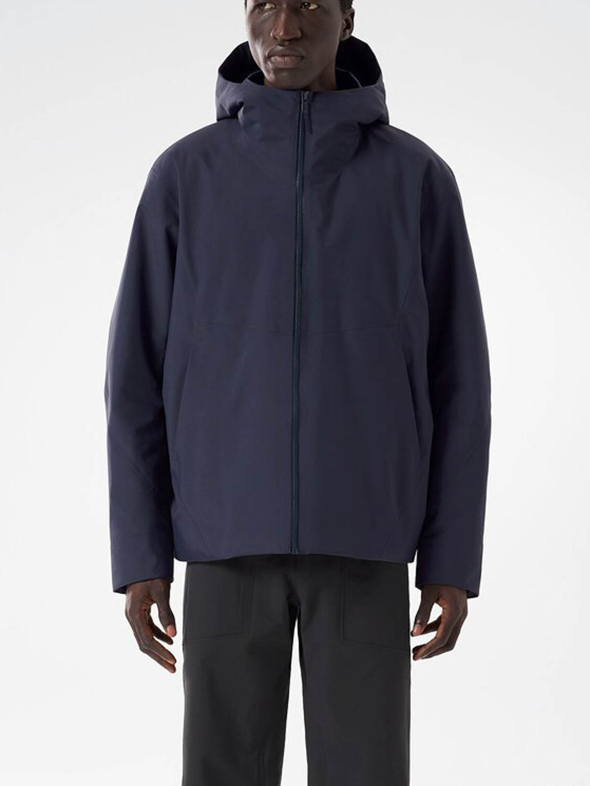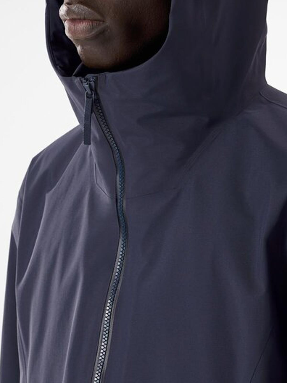 Arcteryx veilance jacket with a comfortable fit moisture resistant windproof breathable lightweight insulated hood offers full coverage and uses a unique precision fit system to improve warmth and fit without affecting peripheral vision the high neck is designed to stay straight without rigidity to maintain coverage and comfort full-length watertight front zip