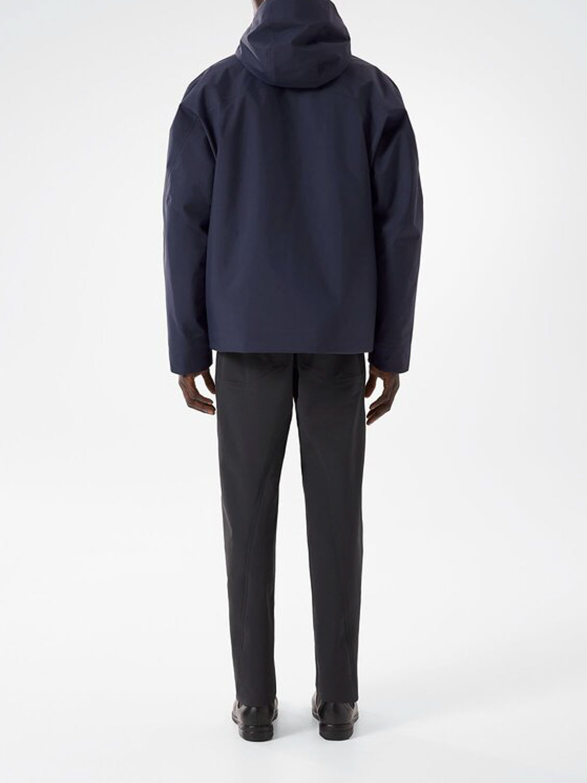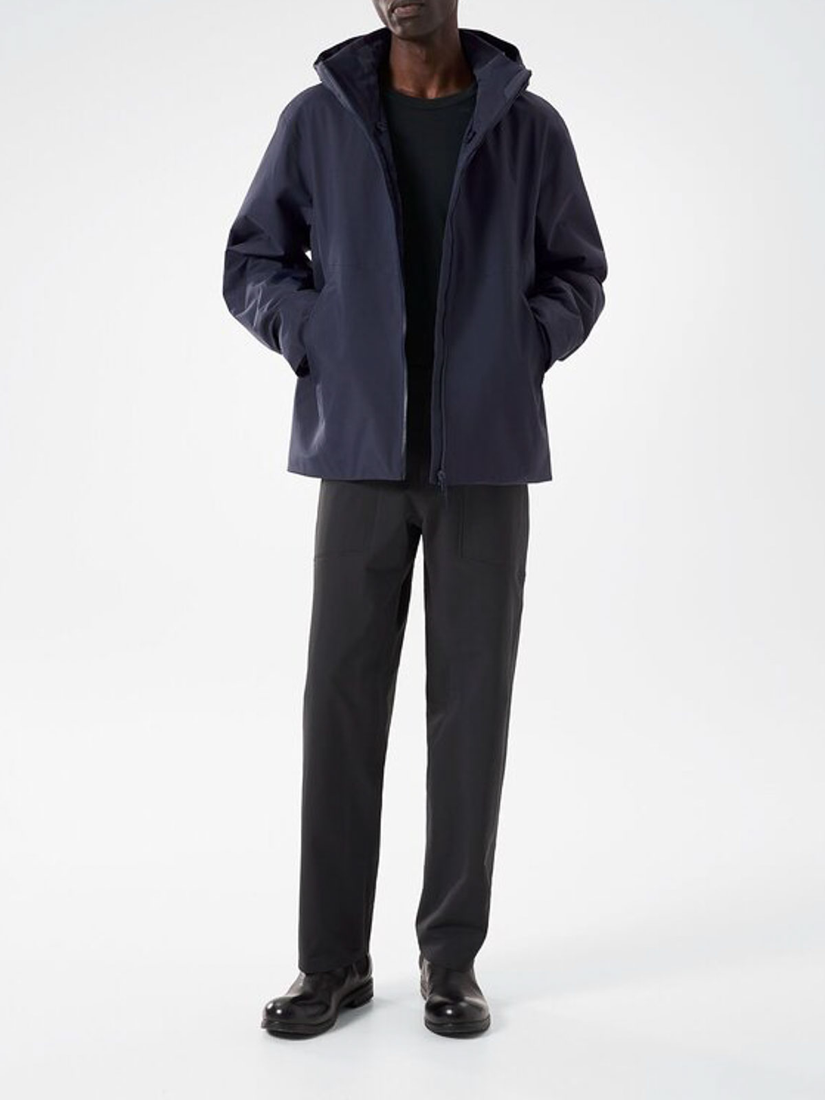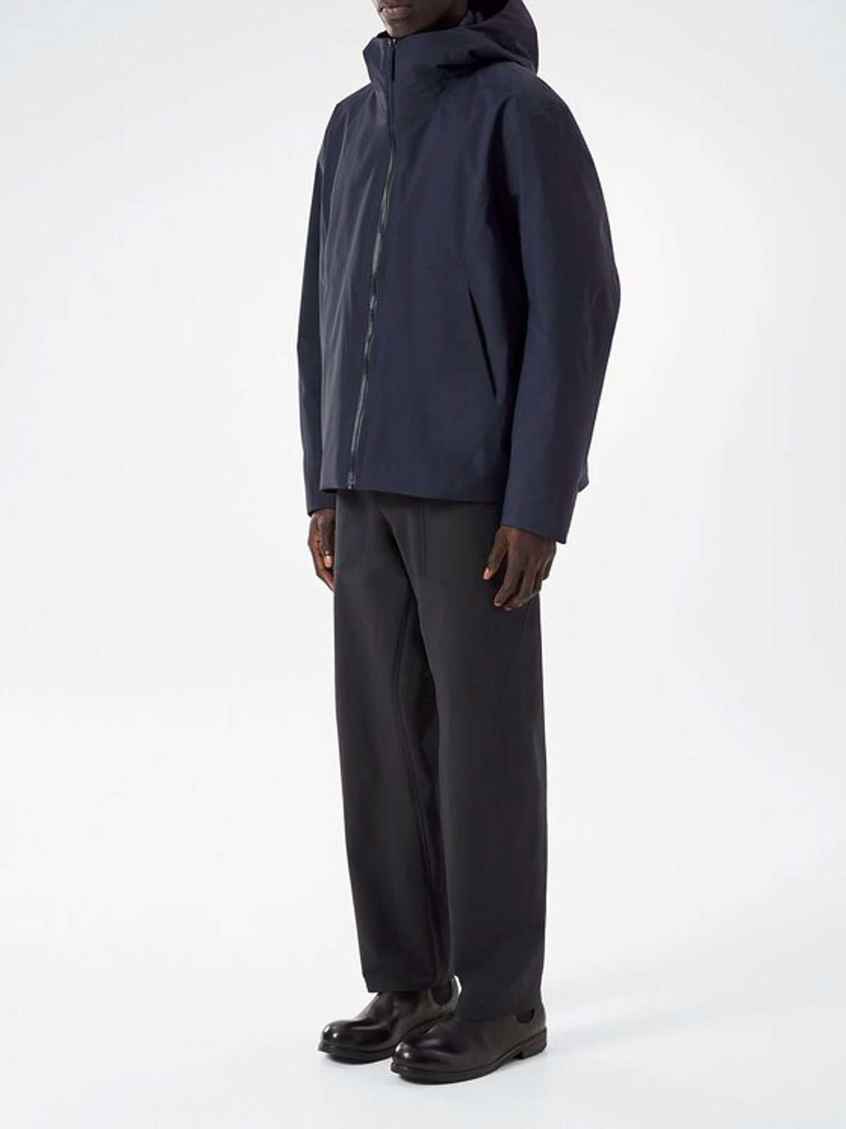 Arcteryx veilance jacket with a comfortable fit moisture resistant windproof breathable lightweight insulated hood offers full coverage and uses a unique precision fit system to improve warmth and fit without affecting peripheral vision the high neck is designed to stay straight without rigidity to maintain coverage and comfort full-length watertight front zip
