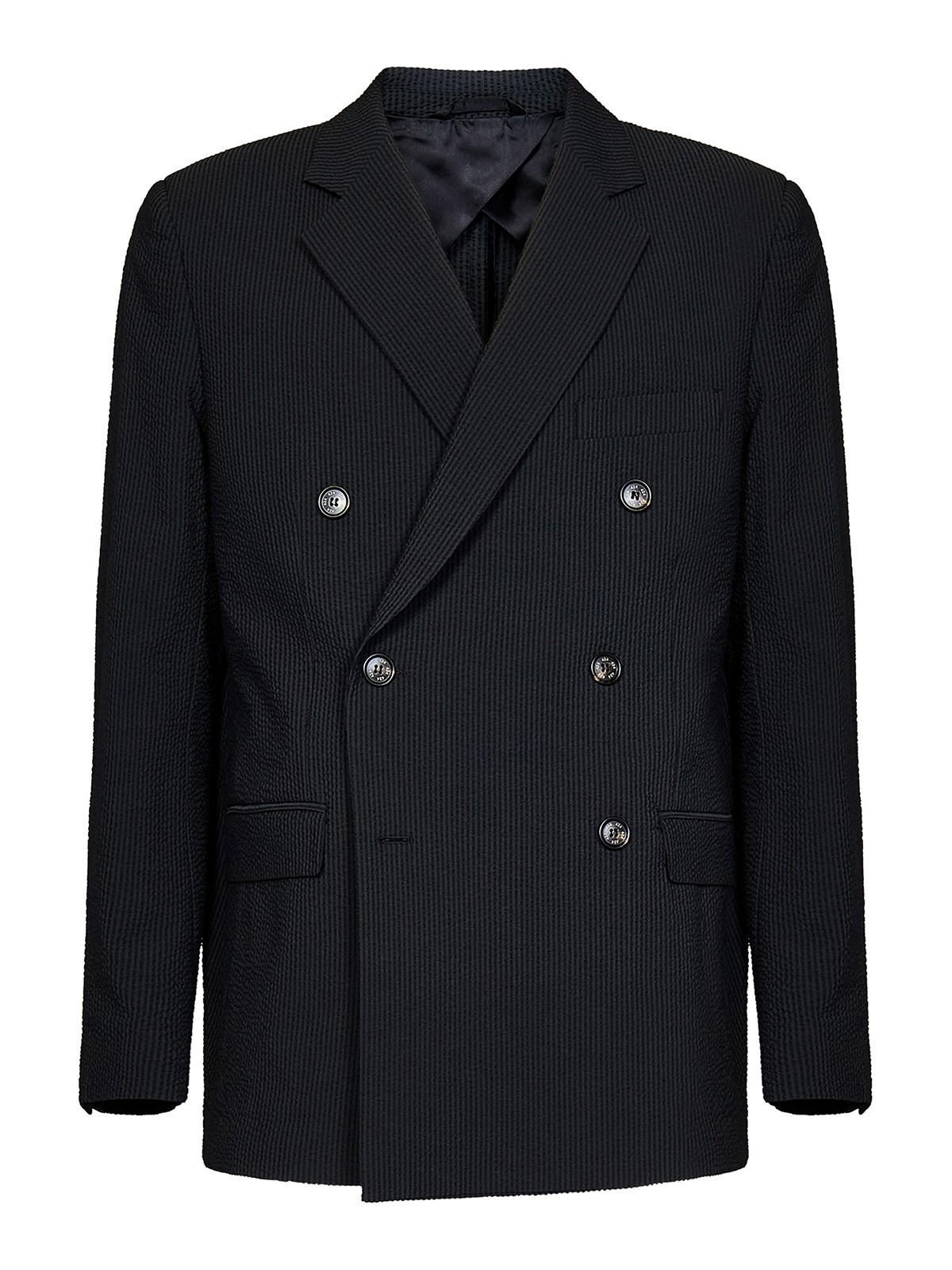 Double-breasted closure with buttons peak lapel buttoned cuffs side pockets with flap welt pocket on the chest central vent on the back partially lined interior all-over striped pattern grey 65% cotton 31% polyamide 4% elastane the item in the photo corresponds to a it size