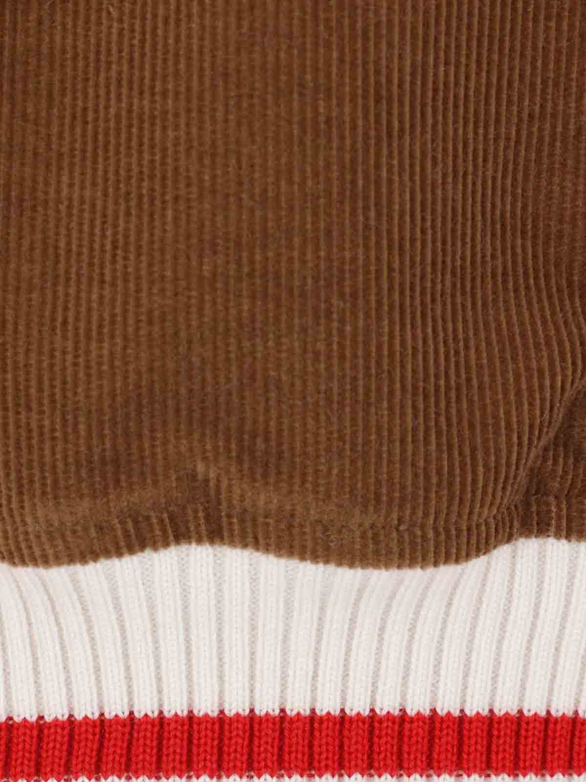 Brown, corduroy, ribbed hem, ribbed cuffs, zip front, point collar