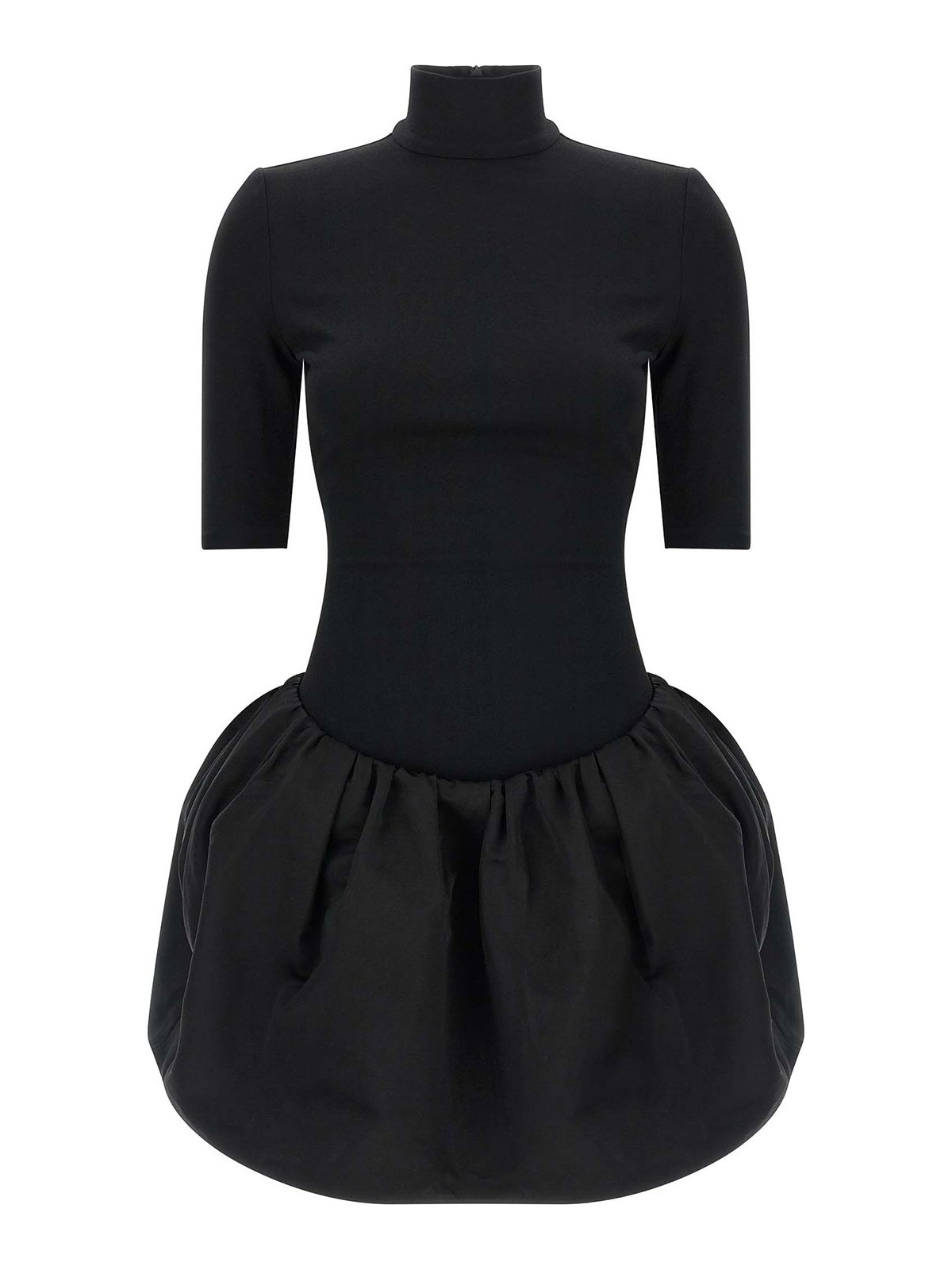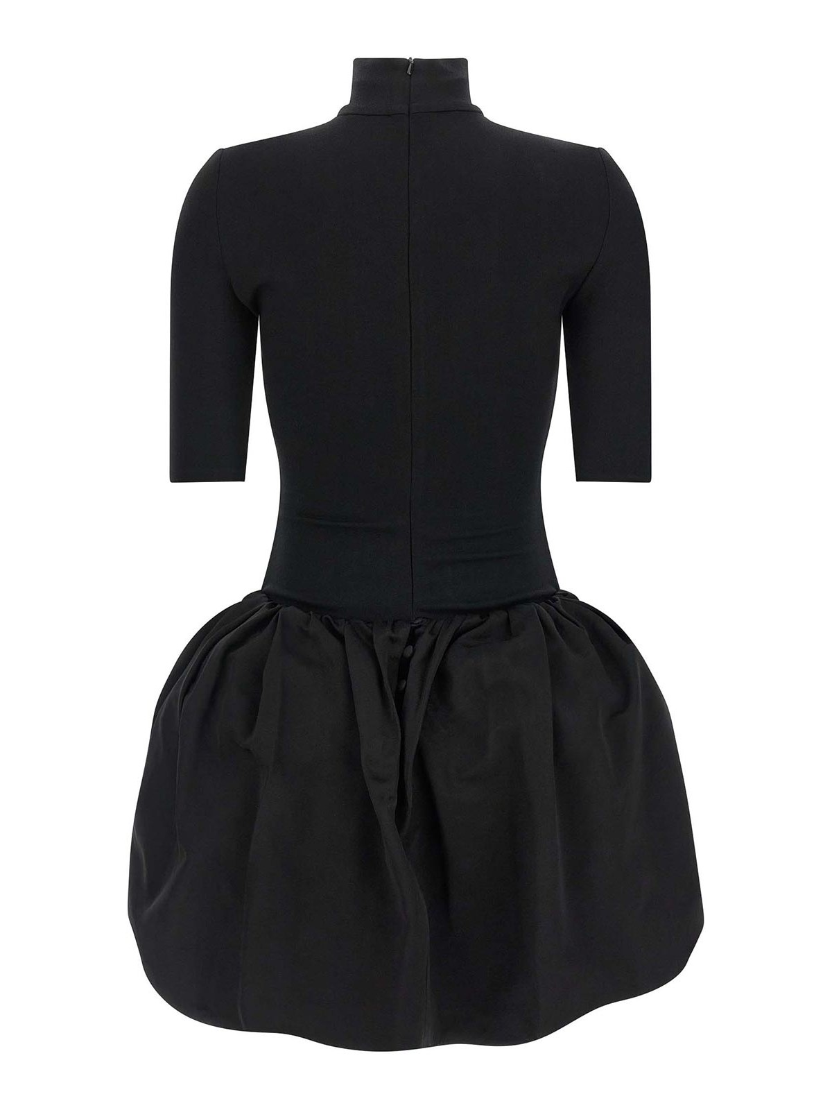 Mini '08' dress in cotton and viscose blend, high neck, back zip and button closure, 3/4 sleeves, silk balloon skirt with tulle inner support.