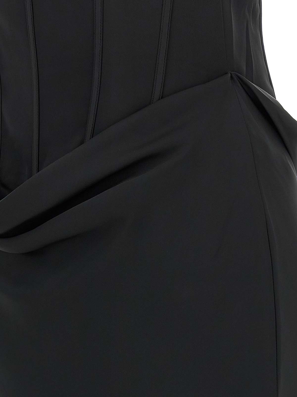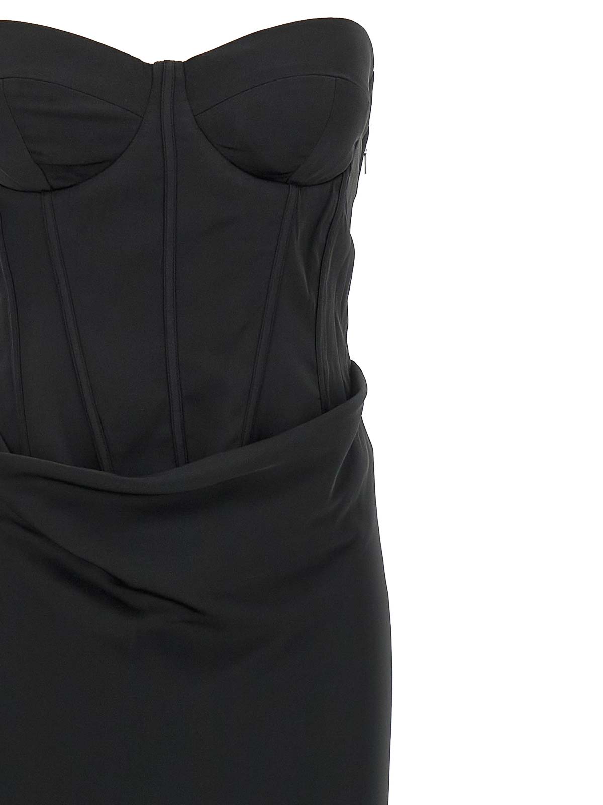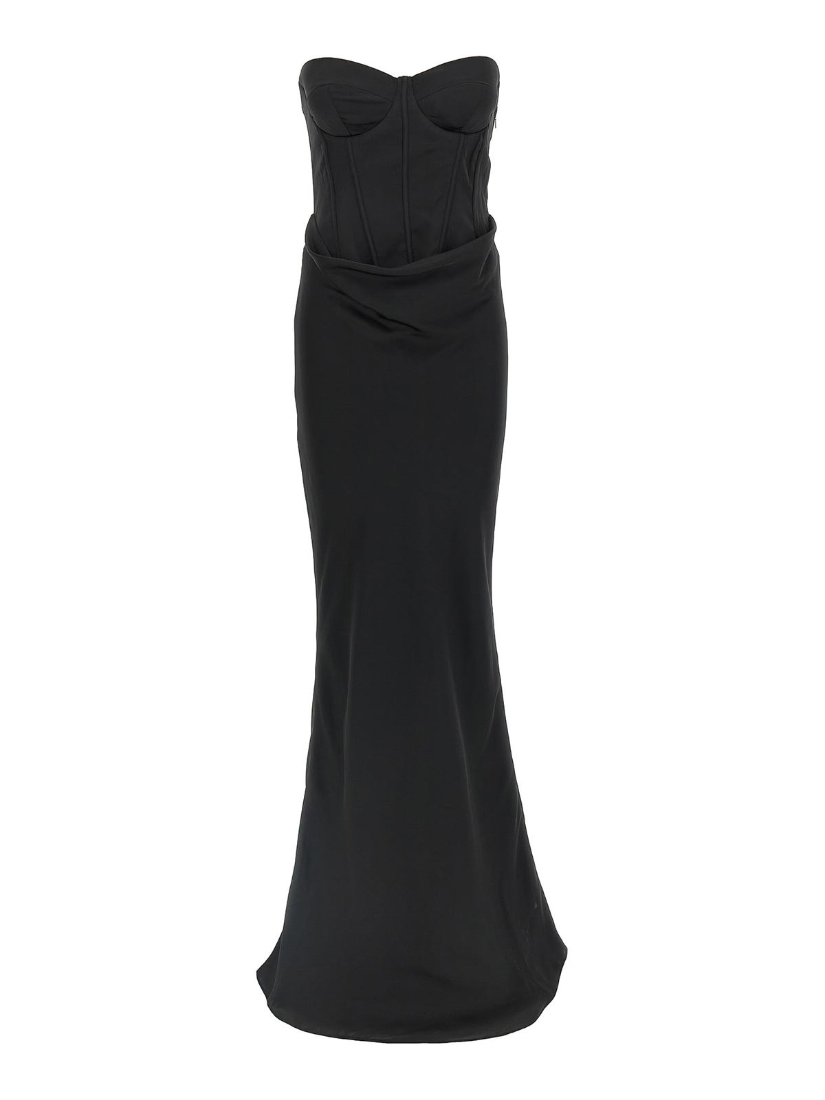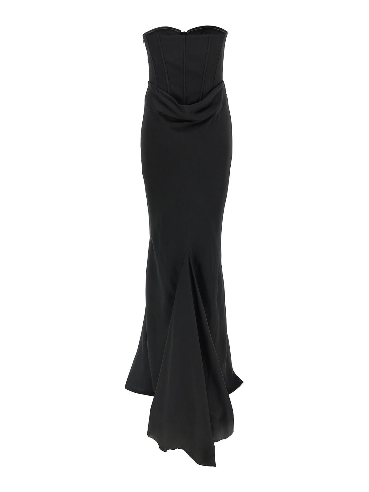 Sleeveless 'satin corset maxi' off-the-shoulder dress in satin consisting of a tight bustier partially detached from the skirt to form draping front and back, side zip closure, mermaid skirt with train.sustainable: product made from recycled polyester.