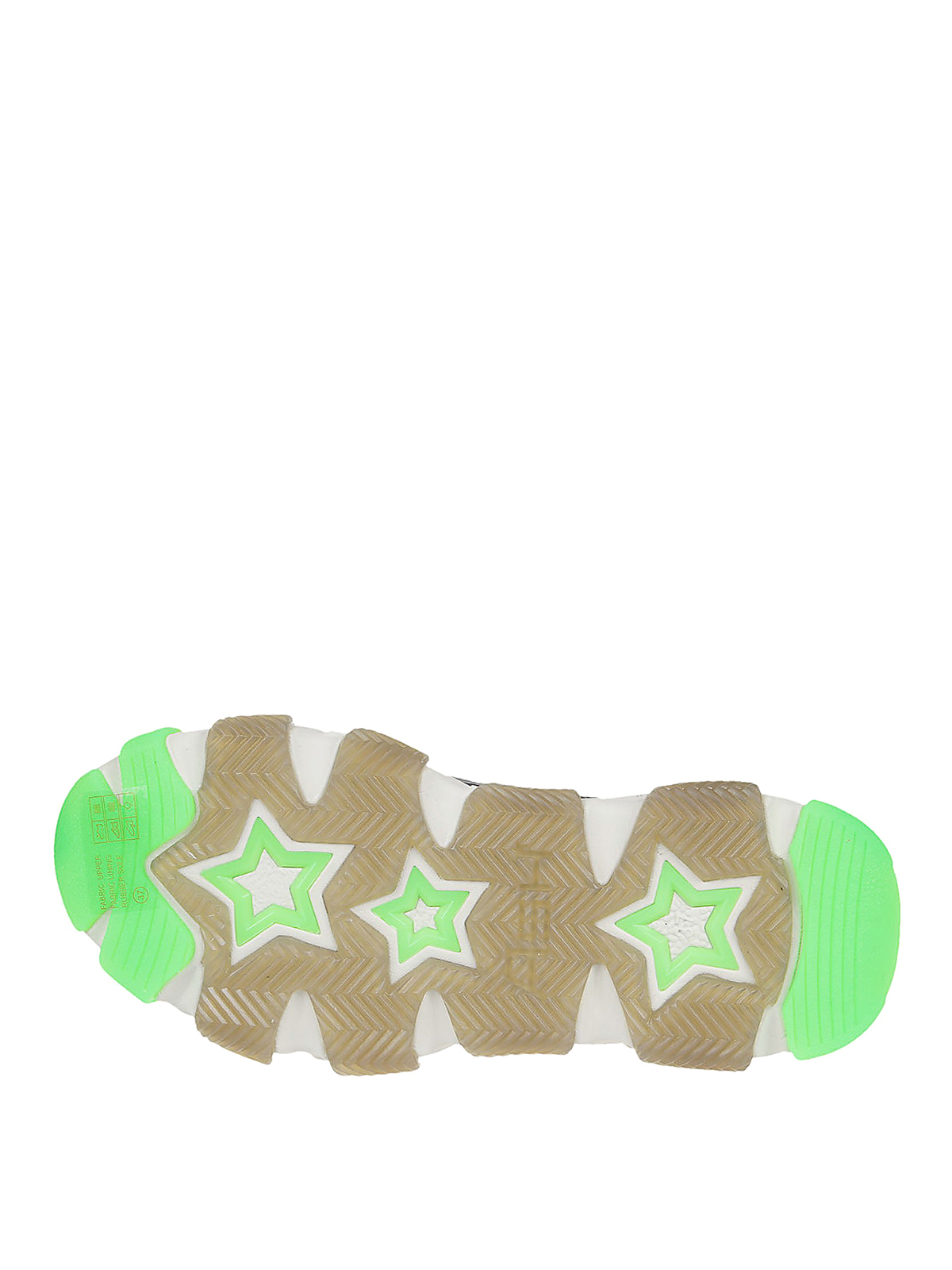 Technical fabric lace-up sneakers featuring neon inserts and chunky sole.