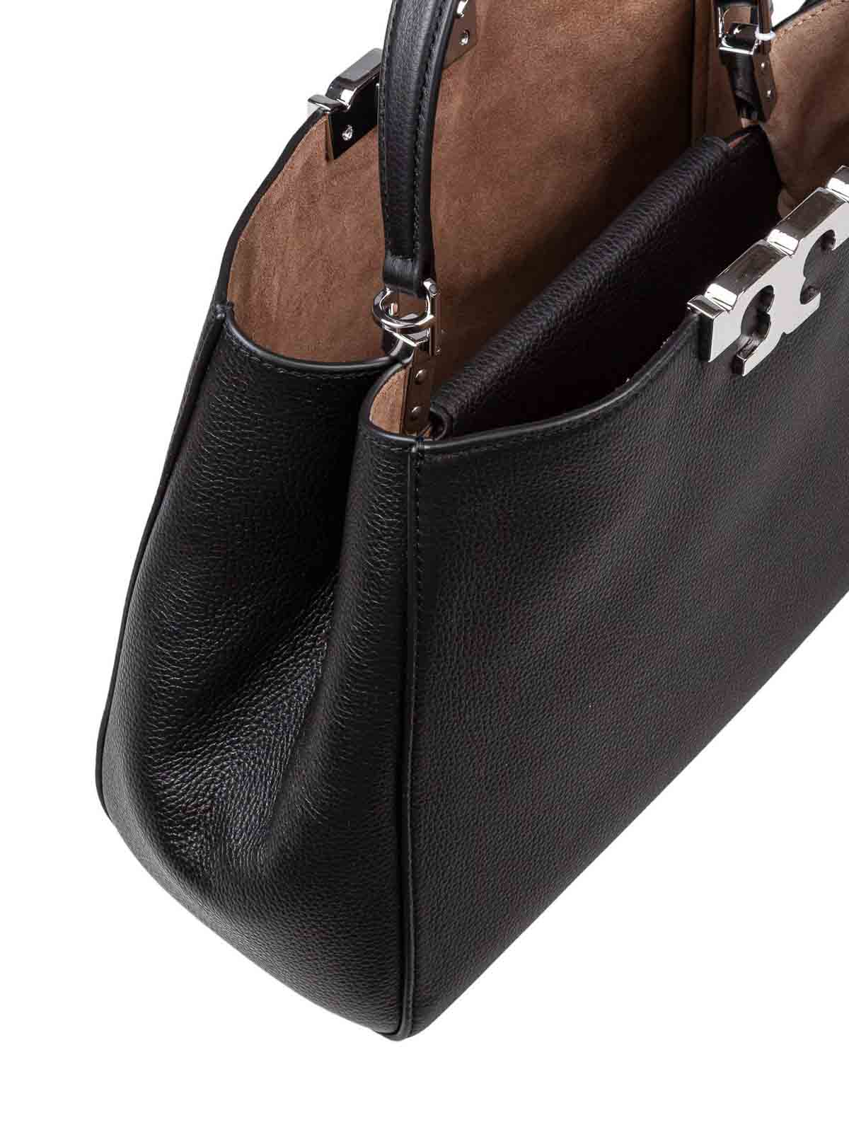 TORY BURCH: cross body bags - Eleanor Satchel Bag In Black Leather