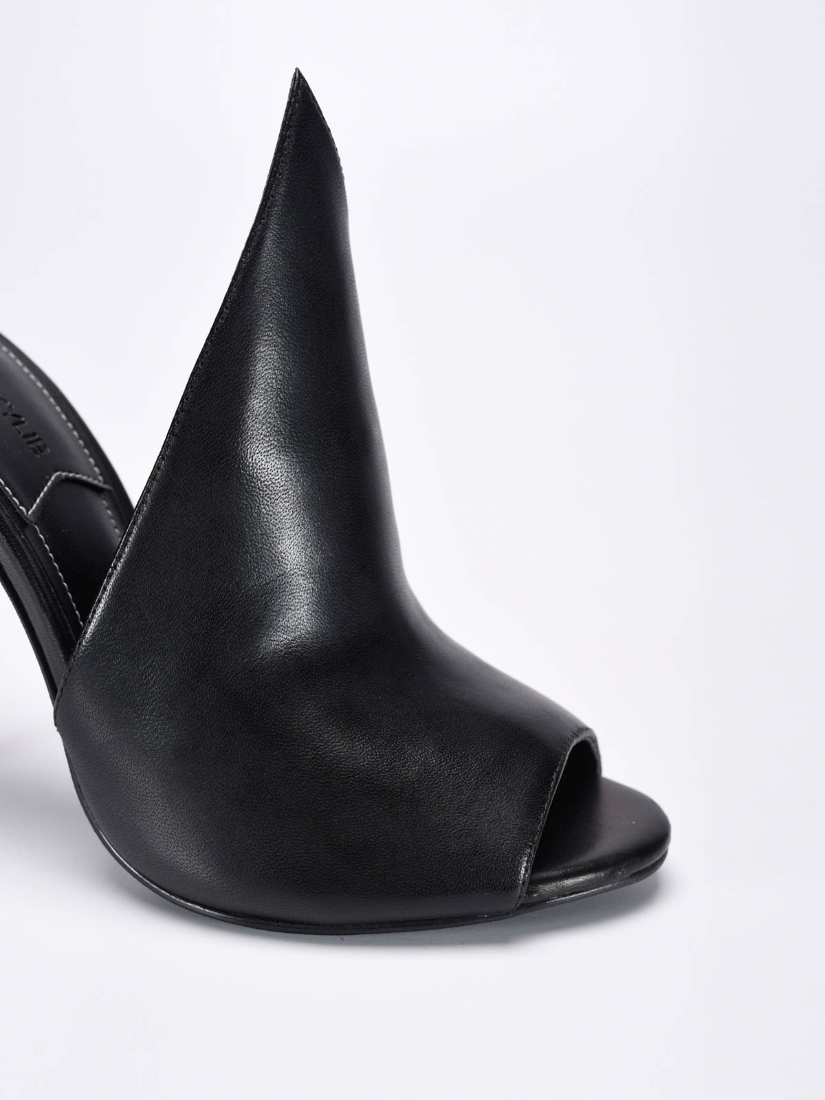 Leather open sandals detailed with geometrical design, open toe and stiletto heel.