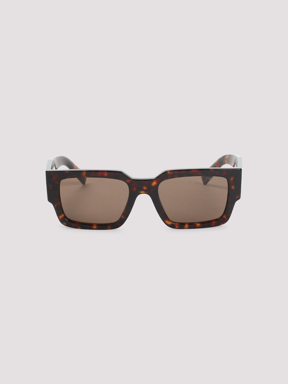 Prada eyewear symbole brown sunglasses brown squared frame tonal lenses logo stamped on the bold temples