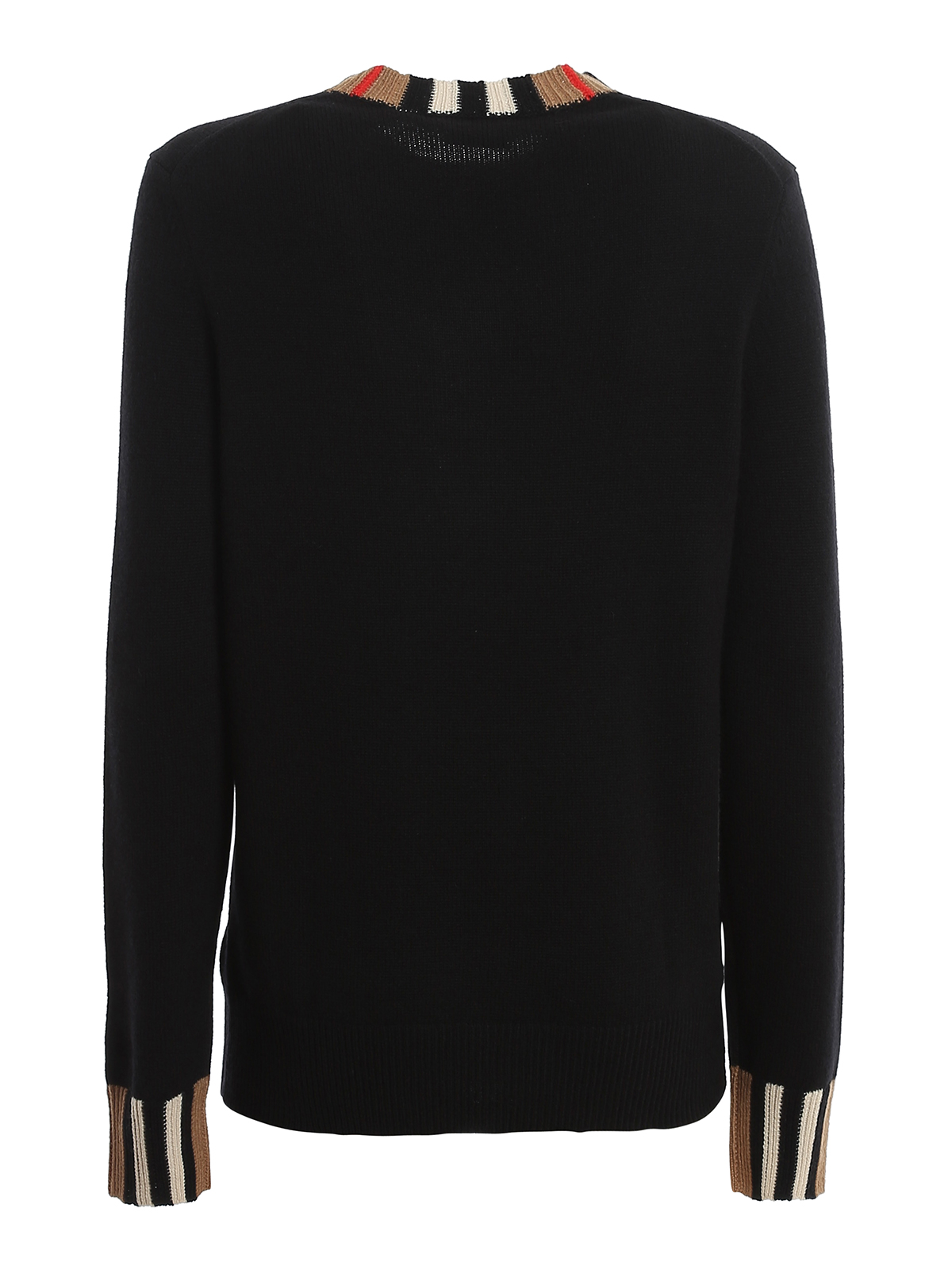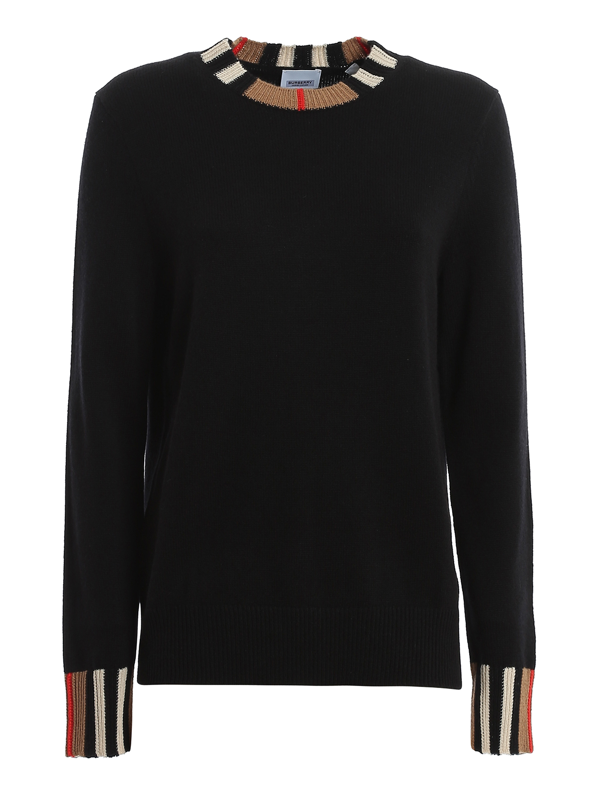 Cashmere crewneck sweater featuring contrasting striped edges.