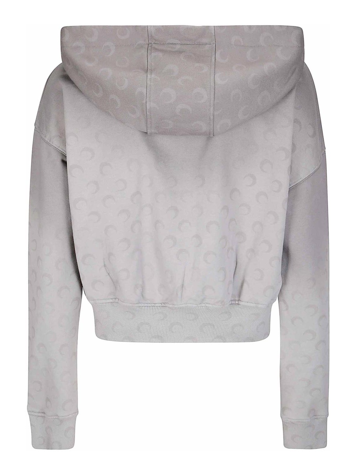 MARINE SERRE: Sweatshirts & Sweaters - Faded Moon Fleece Cropped Zipped Hoodie