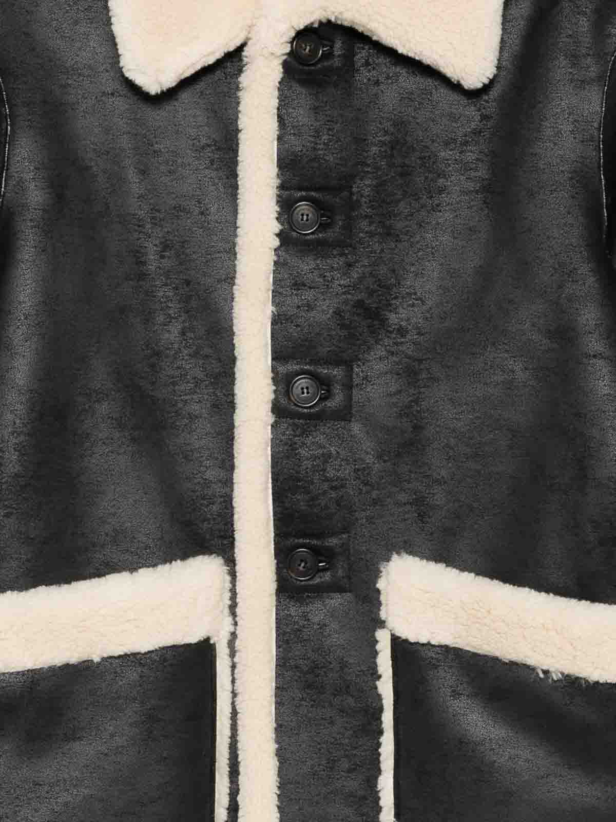 Black front button fastening contrasting collar front patch pockets trim detail long sleeves
