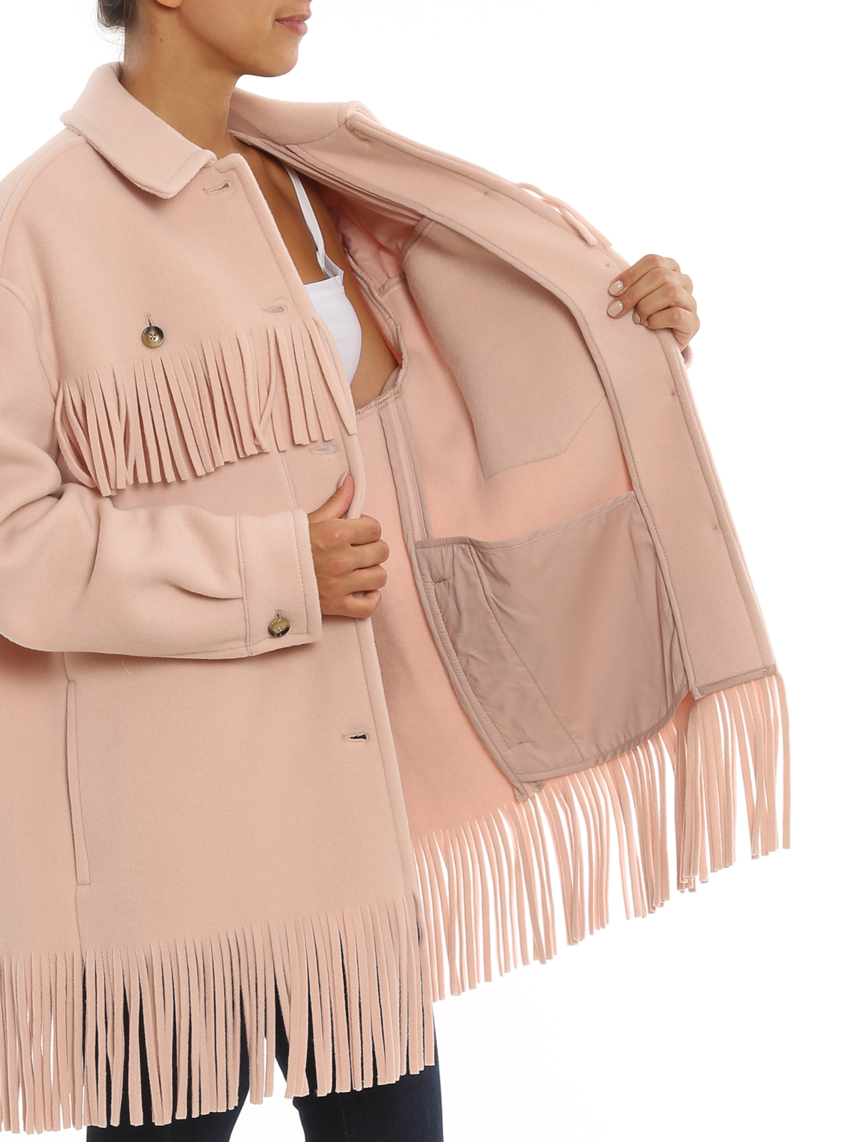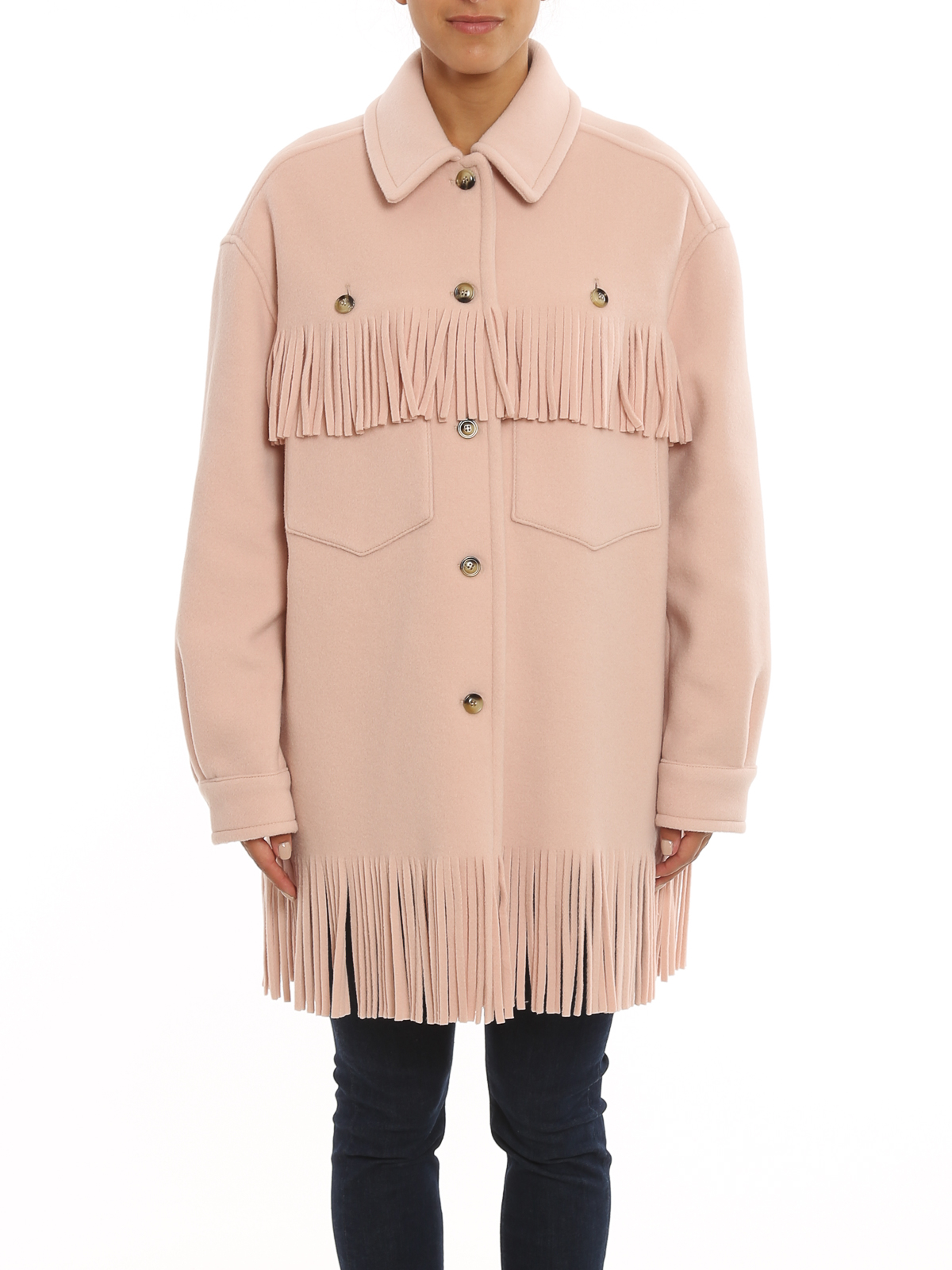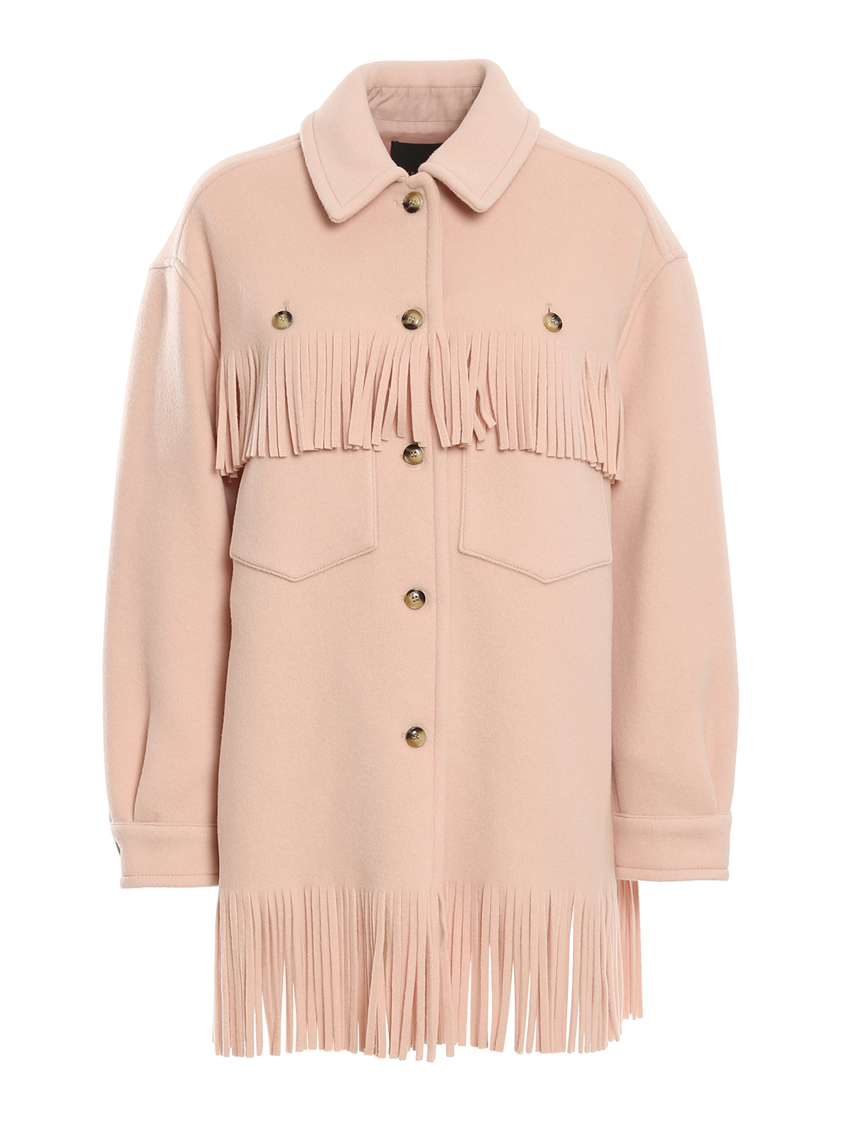 Wool blend velour shirt-jacket featuring fringes detail and button fastening.