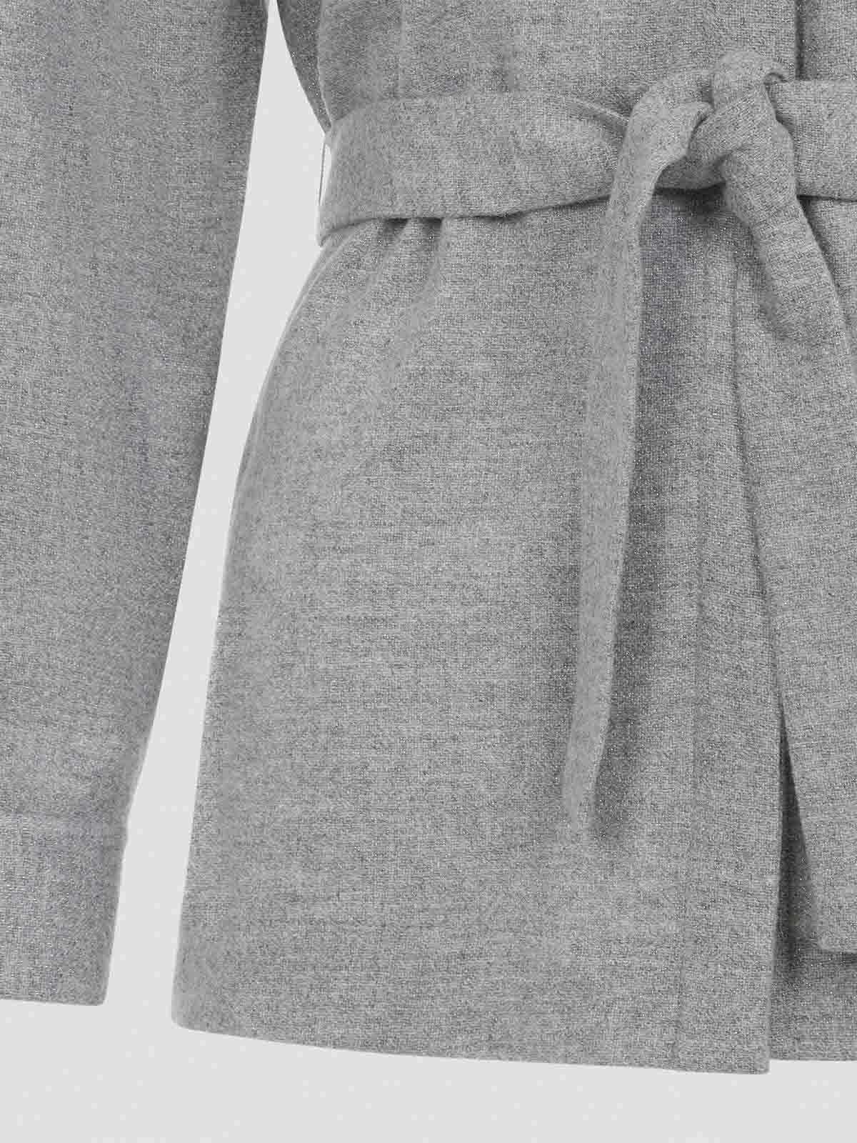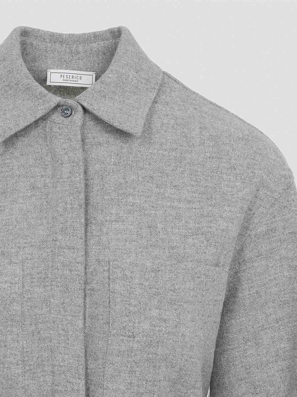 Peserico stone grey flannel shirt crafted and blend pointed collar concealing buttoned chest pockets tonal adjustable belt long sleeves buttoned cuffs straight hem