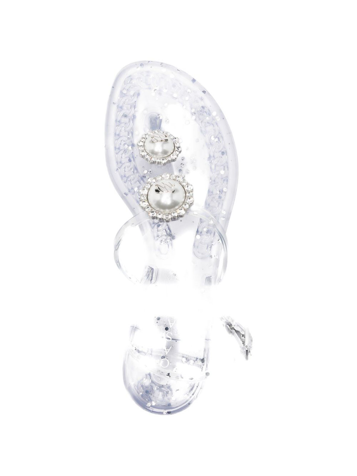 White embellished detail buckle fastening t-strap flat sole