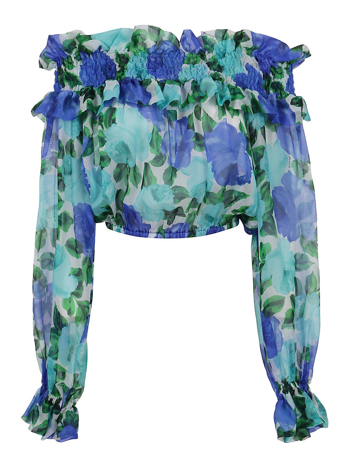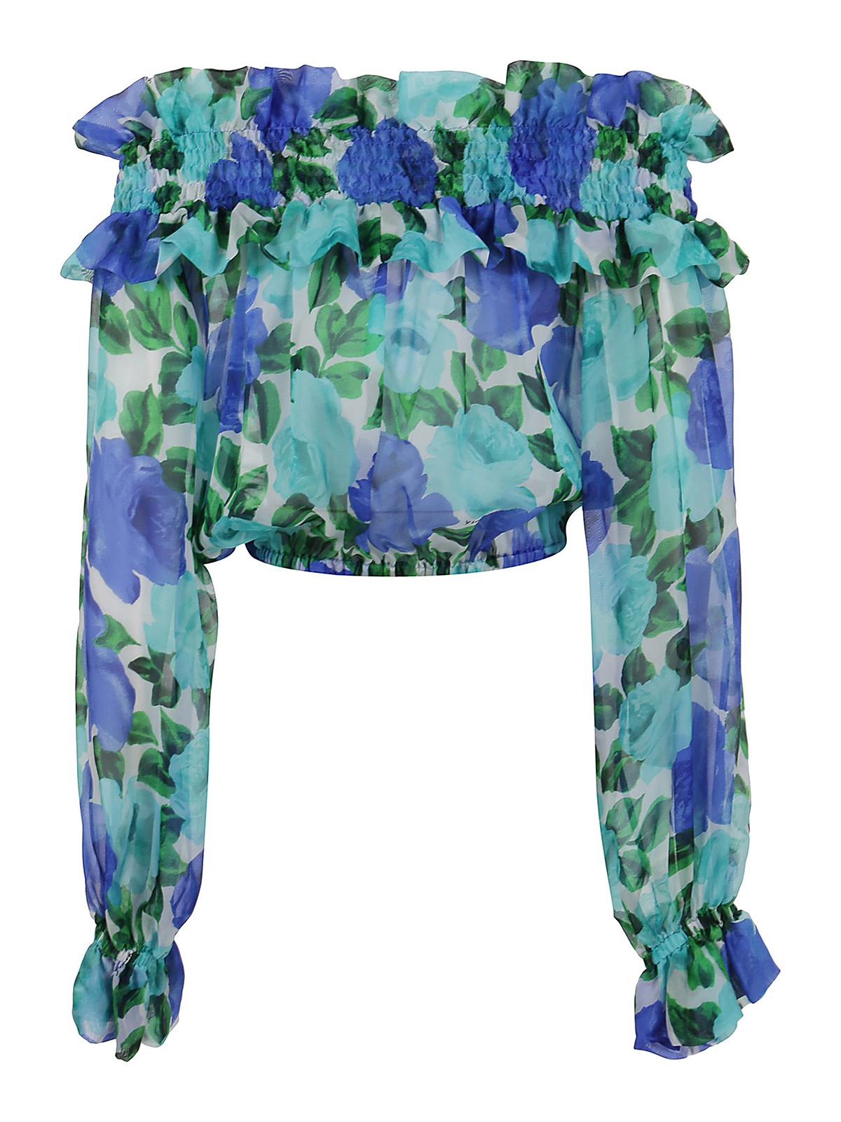 P.A.R.O.S.H.: Tops & Tank tops - Floral printed off-shoulder silk top