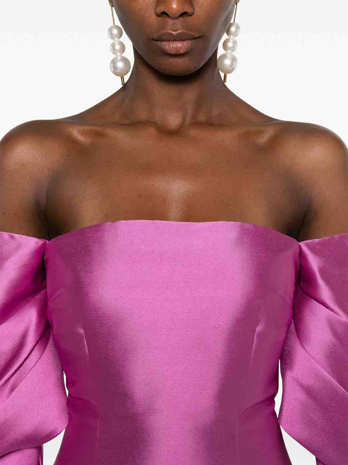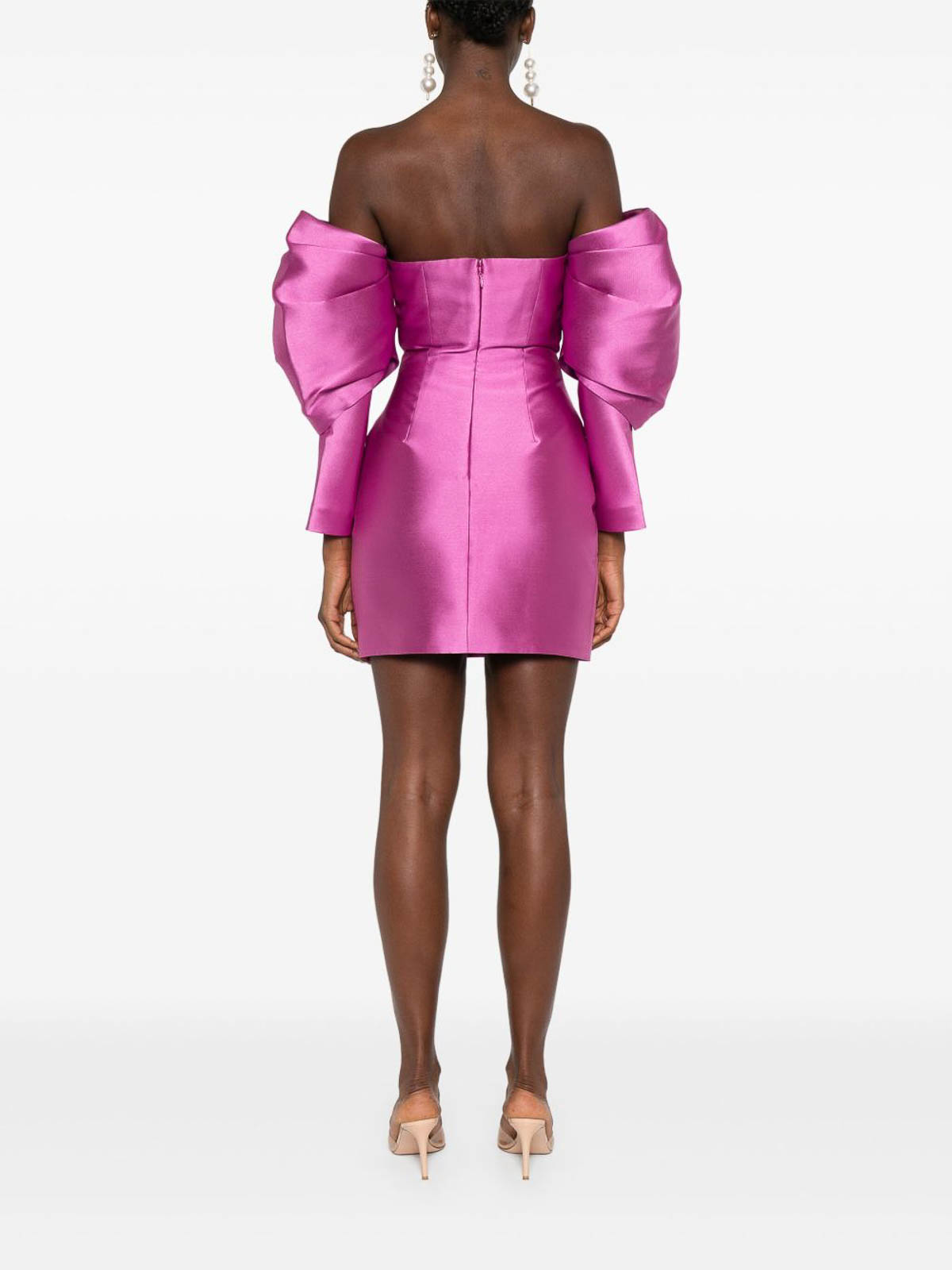 Electric purple concealed rear zip fastening long draped sleeves fitted waistline straight hem