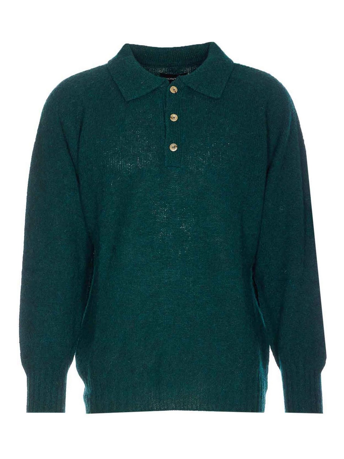 Howlin green ghost pressure sweater, long sleeves, collar, buttons closure