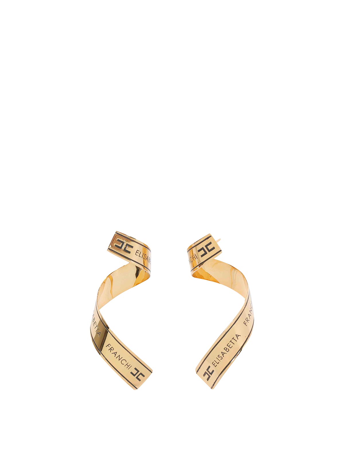 ELISABETTA FRANCHI: Earrings - Gold Logo Earrings