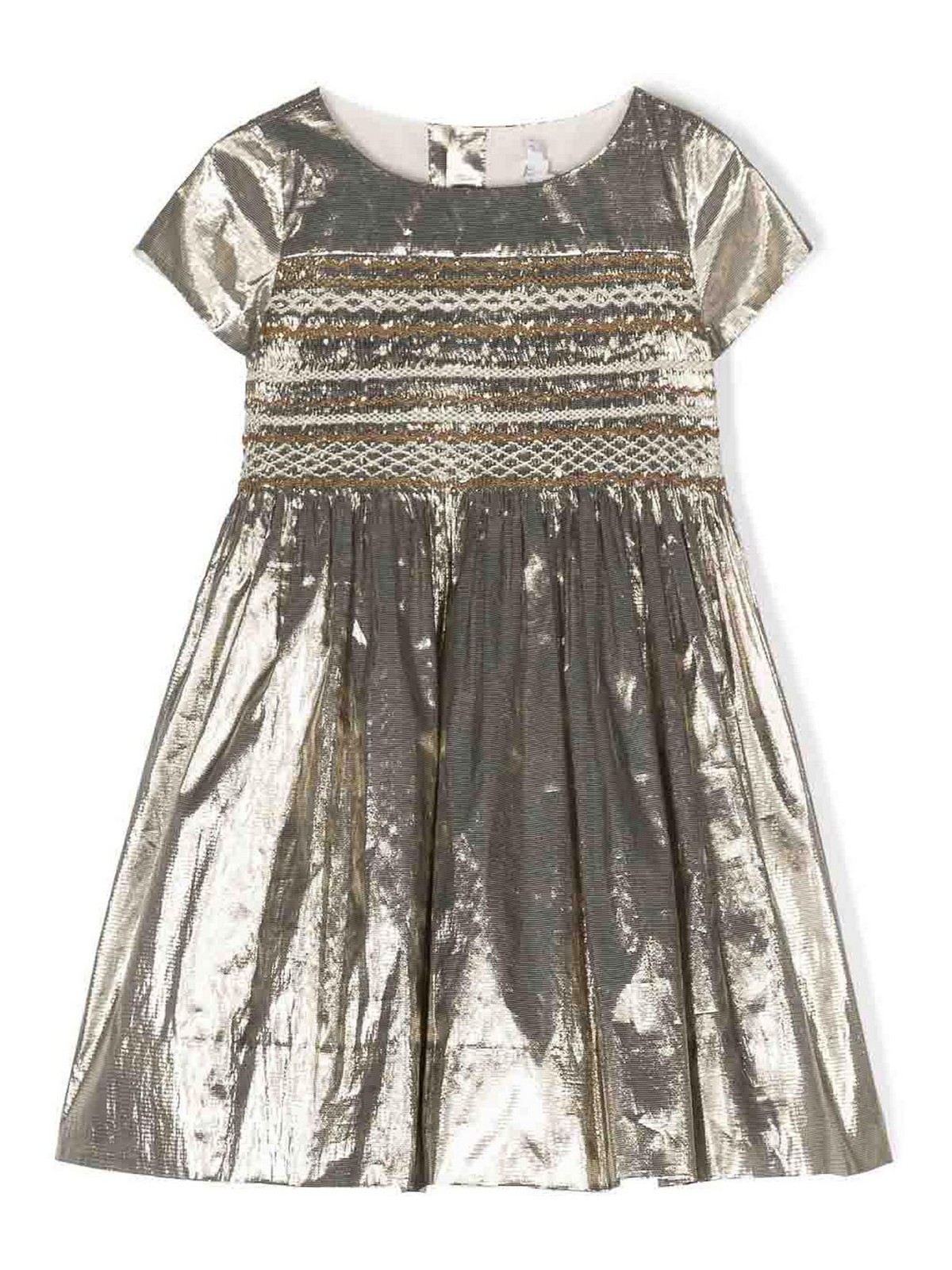 Bonpoint: knee length dresses - Gold silk blend girl bonpoint dress
