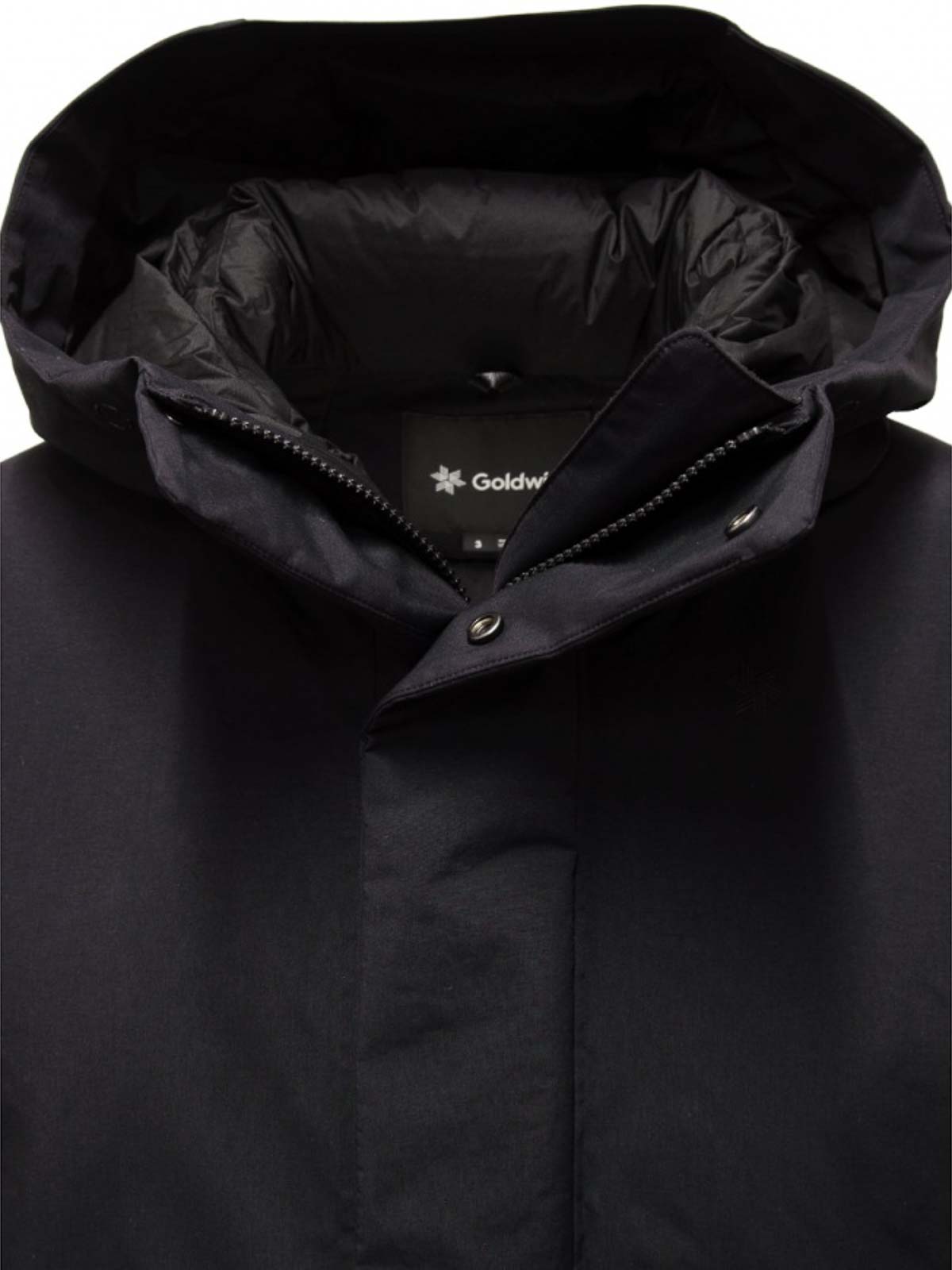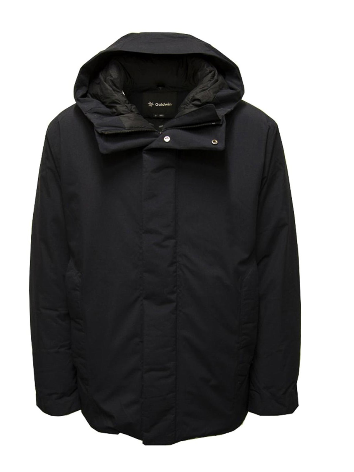 Goldwin down jacket made with gore-tex products with excellent waterproofness and moisture permeability compatible with winter double front flap similar texture an ecological recycled down (recycled material) is used equipped with the original goldwin d box baffle structure to guarantee a `high heat retention d box baffle a baffle structure with unique stitching also adheres to the body line when worn and minimizes cold spots which further improves heat retention this d box baffle adopted in both the front and back The hood at the back is also padded with down to protect the face from the cold. Side pockets with zip. The silhouette can be adjusted using a drawstring on the hem.