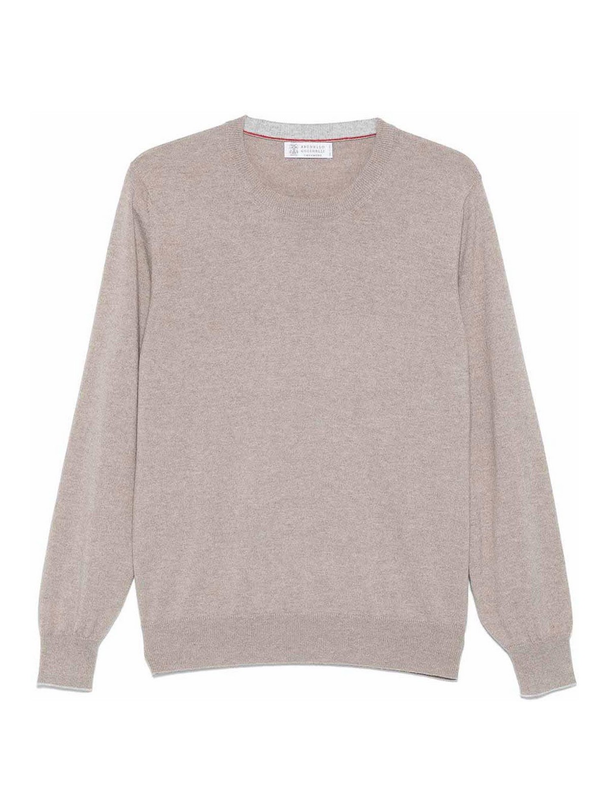 BRUNELLO CUCINELLI: crew necks - Grey Crew-Neck Long-Sleeve Cashmere Sweater