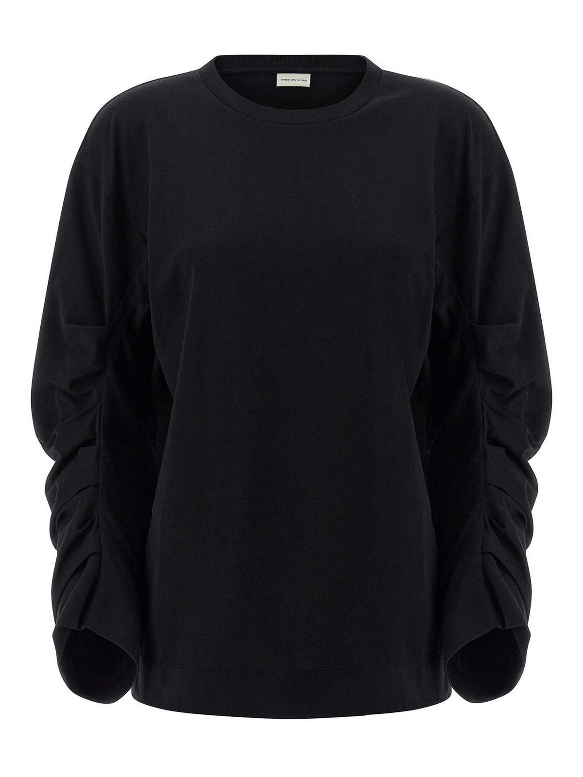 heynas' crew neck T-shirt with long pleated sleeves and dropped shoulders