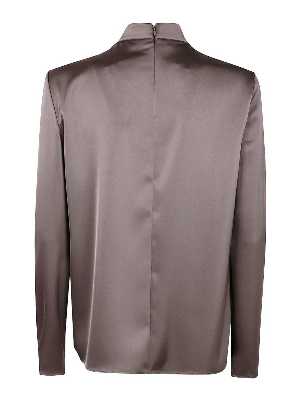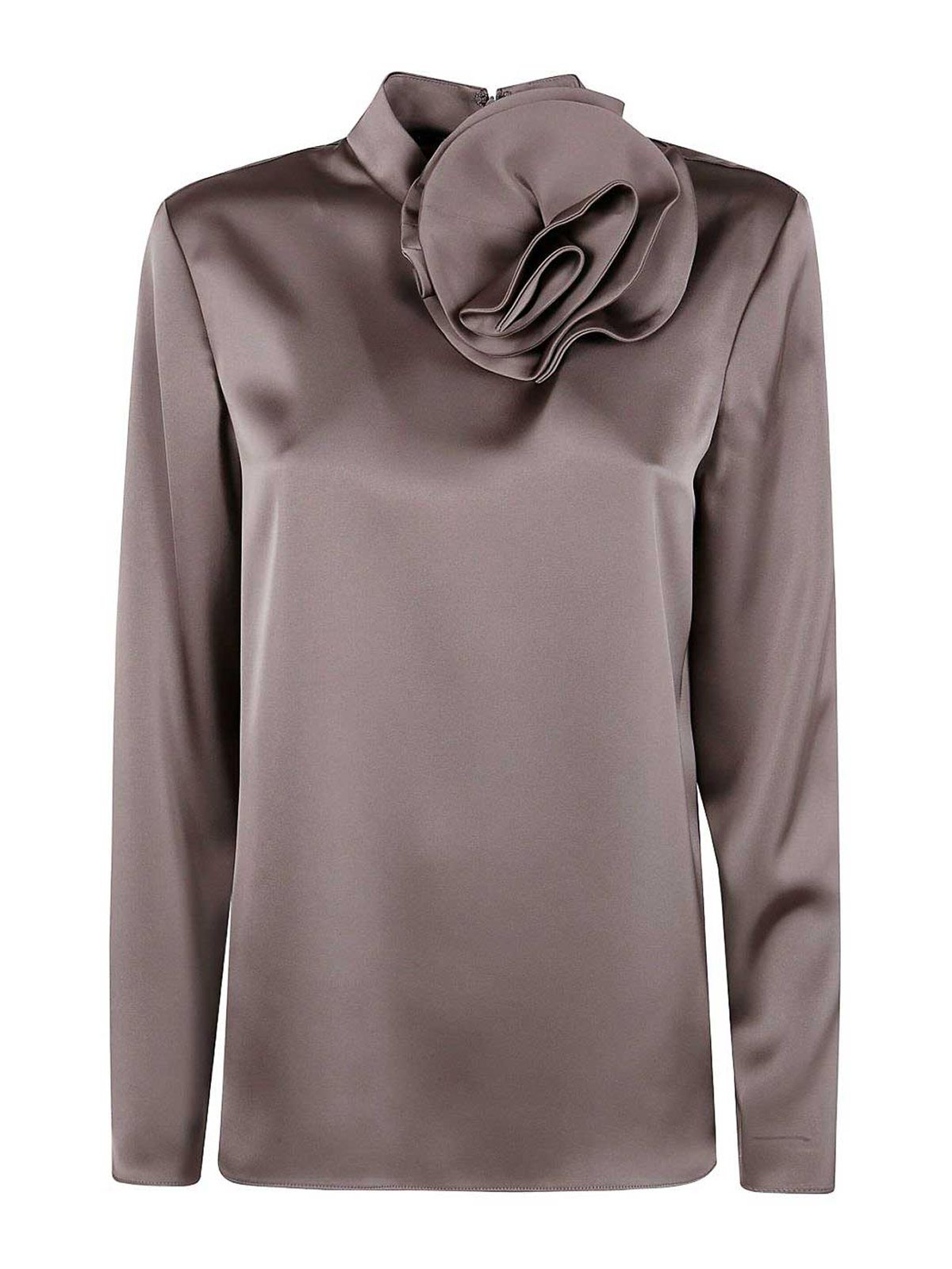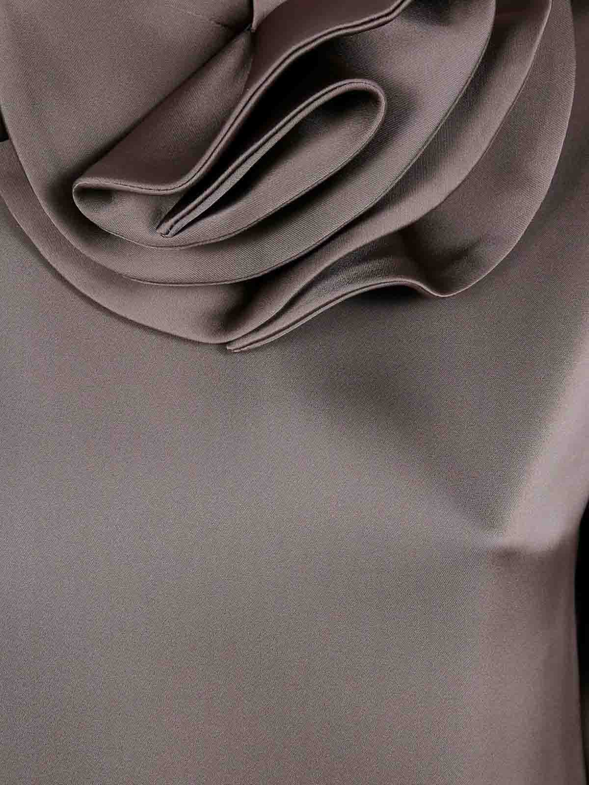 Taupe brown floral appliqu high neck long sleeves rear zip fastening straight hem