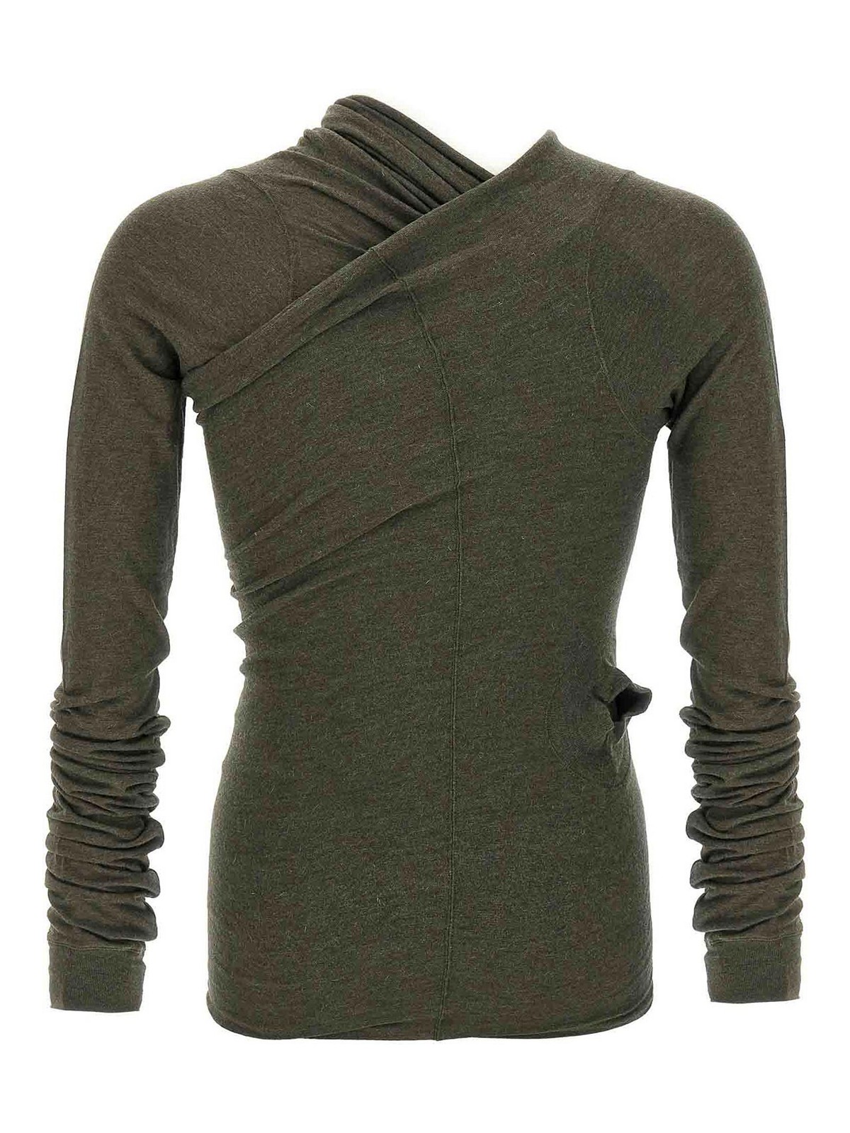 hollywood banana' long, sleeved T-shirt and blend it has a bottom layer with two round holes with ribbed edges and an layer that folds to create a crossed draping on the and back neck
