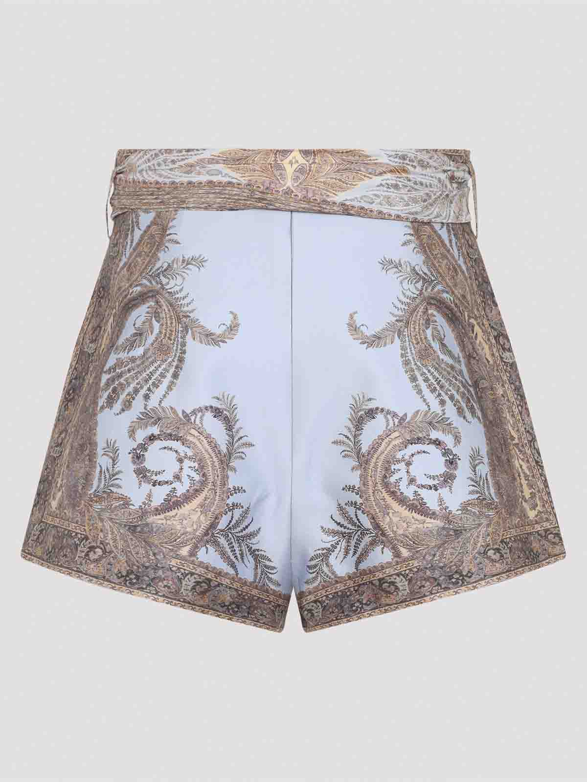 Zimmermann lilac paisley hypnotic flat short crafted and blend tonal belt belt loops concealing zipped straight hem lilac background contrasting brown paisley design