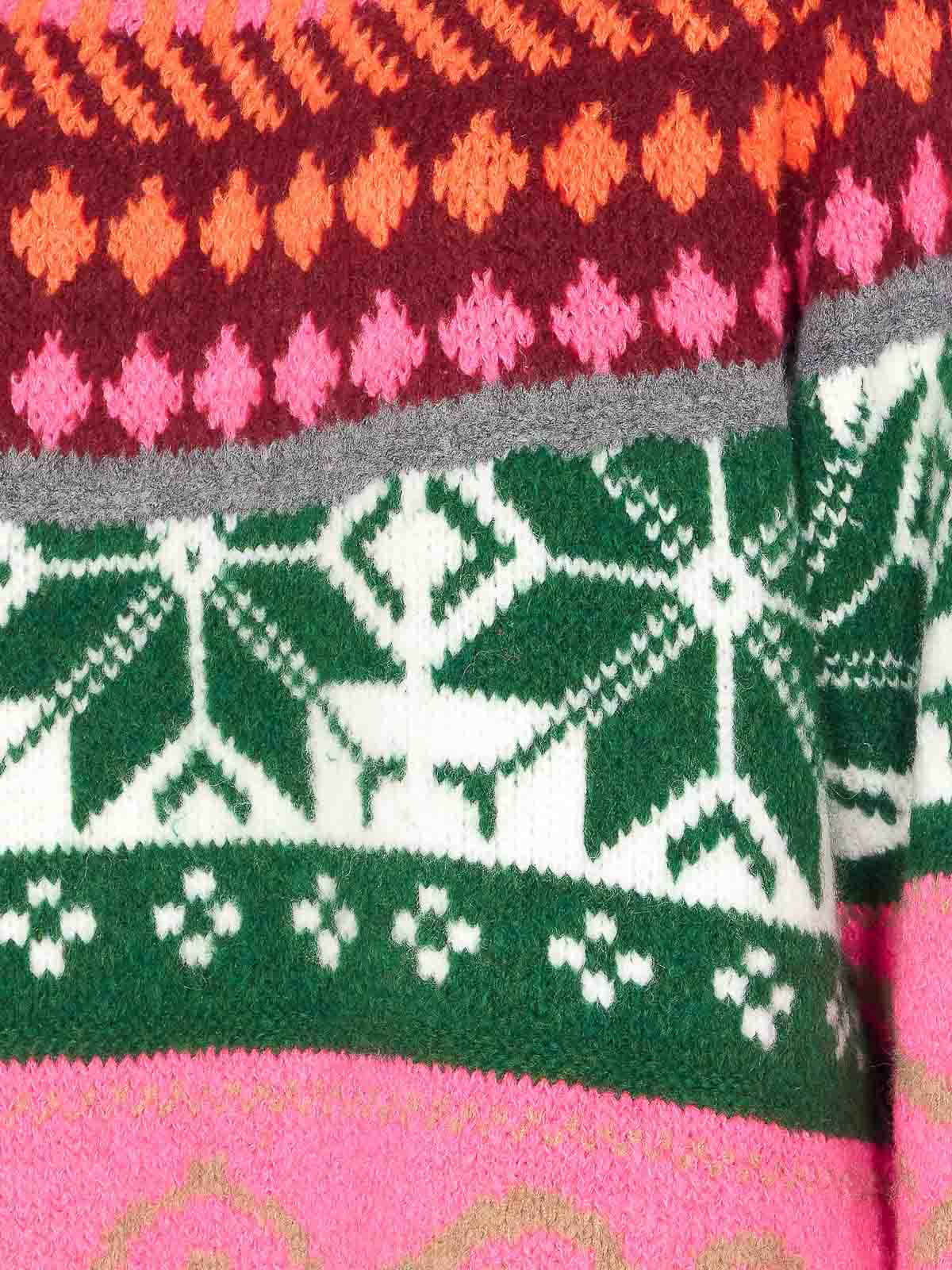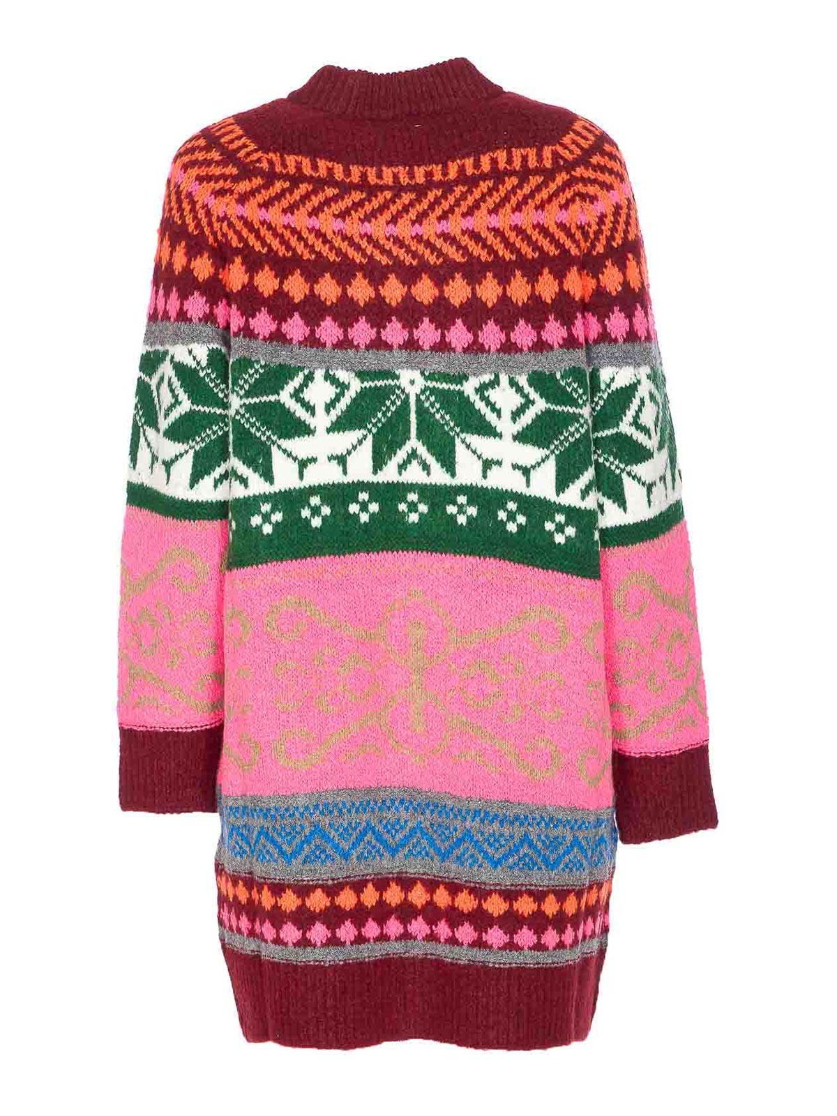 Essentiel antwerp multicolor knitted dress, high neck, long sleeves, patterned