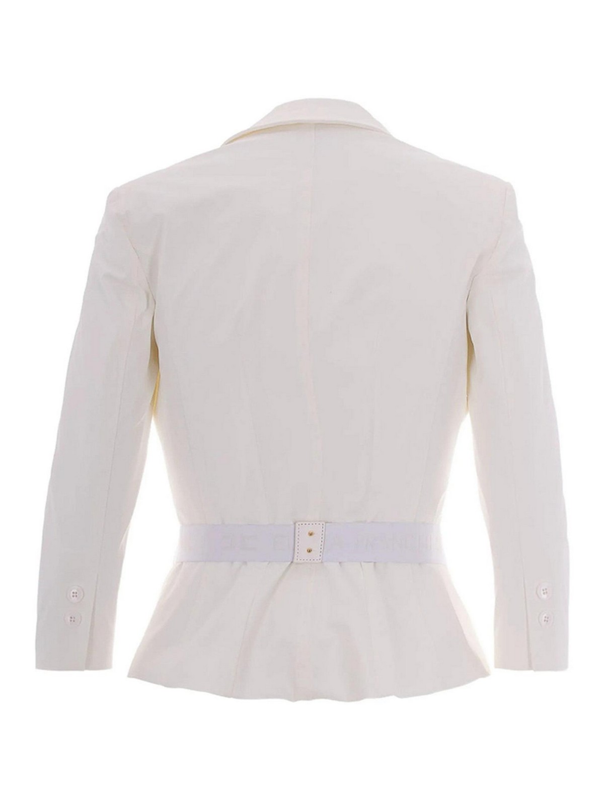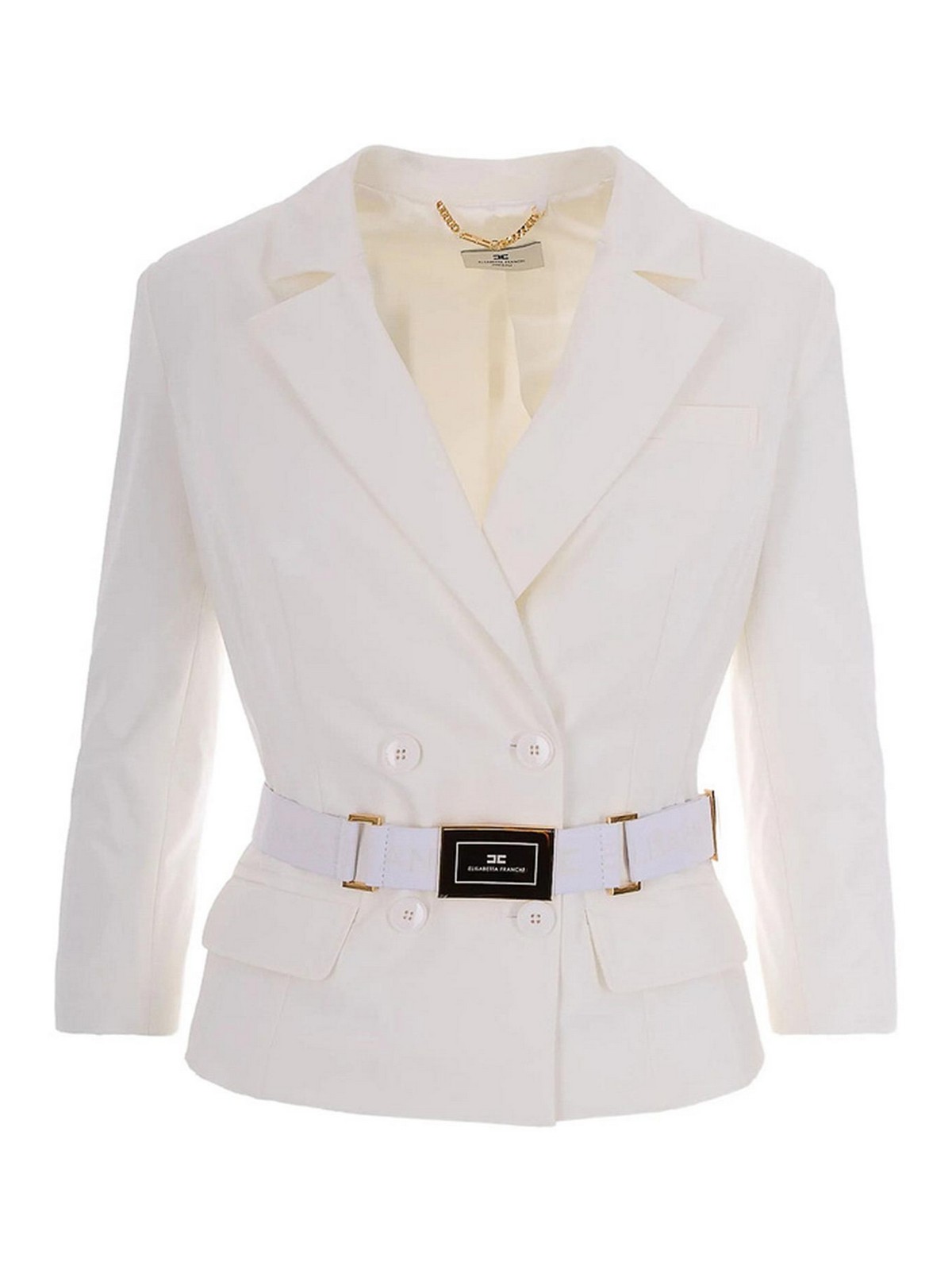 White belt double-breasted flap pockets gold-tone hardware button fastening