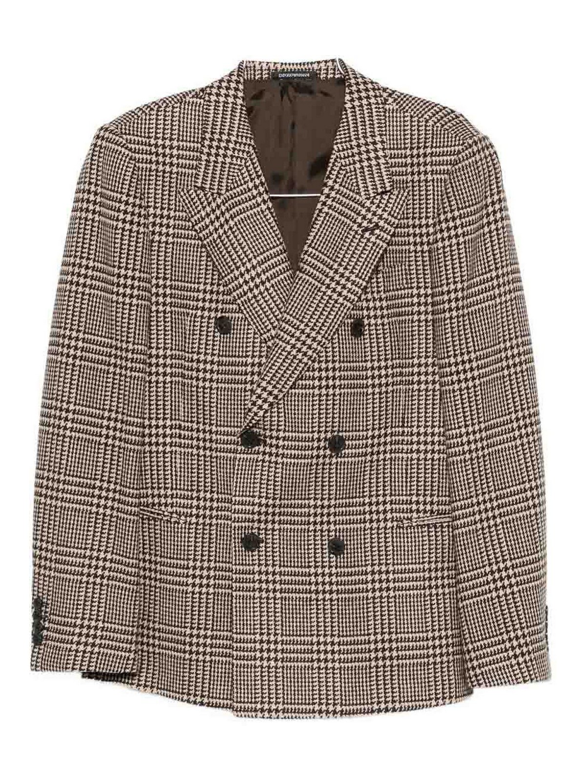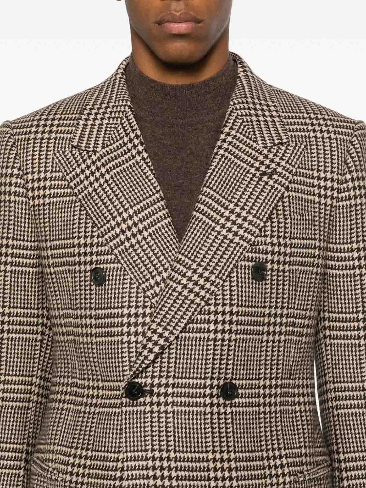 Brown houndstooth pattern double-breasted button fastening long sleeves peak lapels