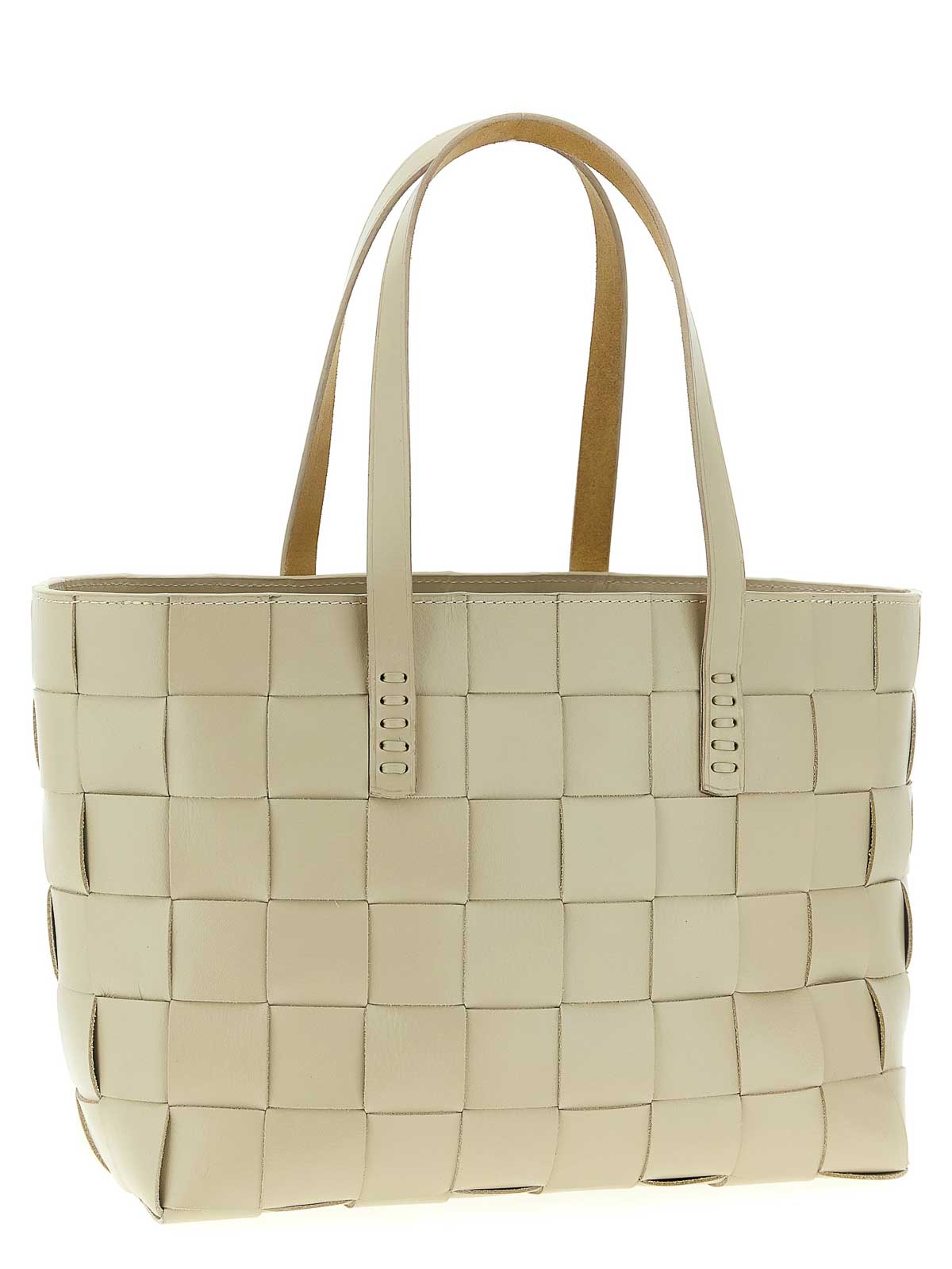 japan tote' hand-woven buffalo leather shopping bag, cotton lining, double fixed handle.an antiqued st. christopher medal-shaped pendant, in homage to the patron saint of travelers, is hand-sewn inside each bag dragon diffusion the brand's seal of authenticity.