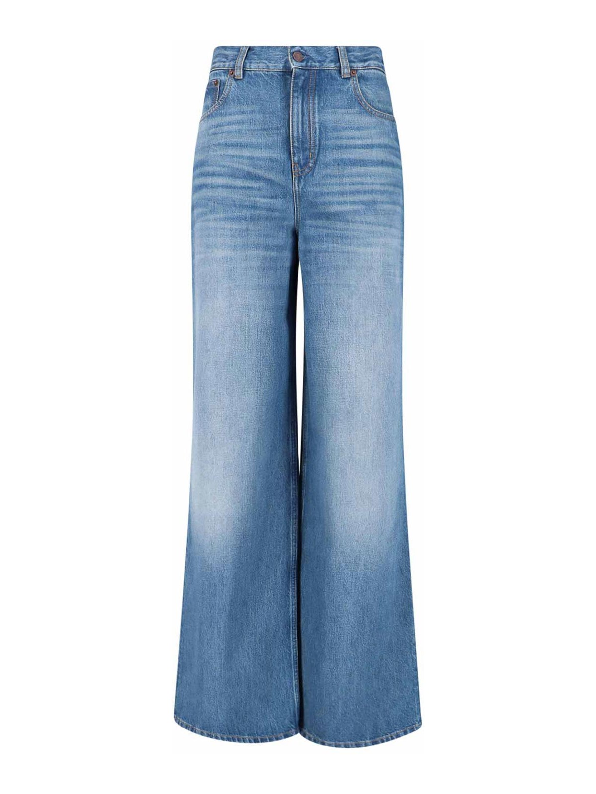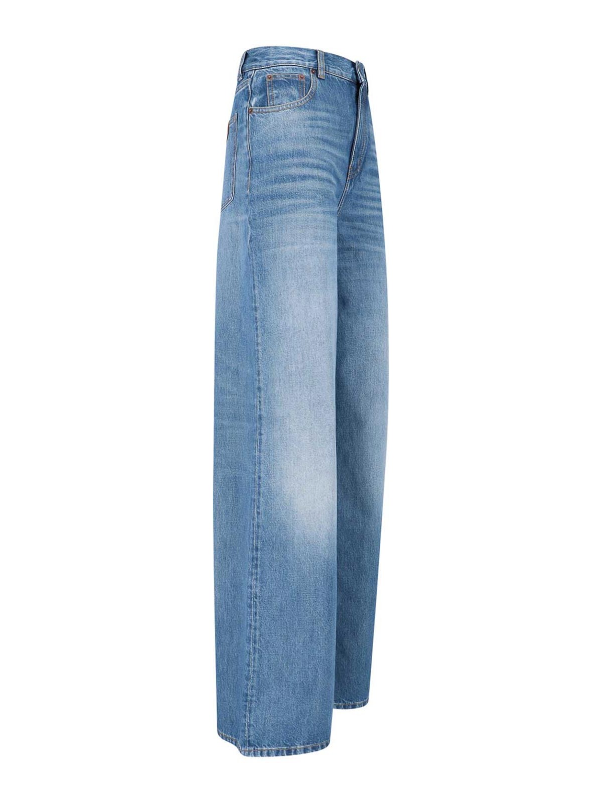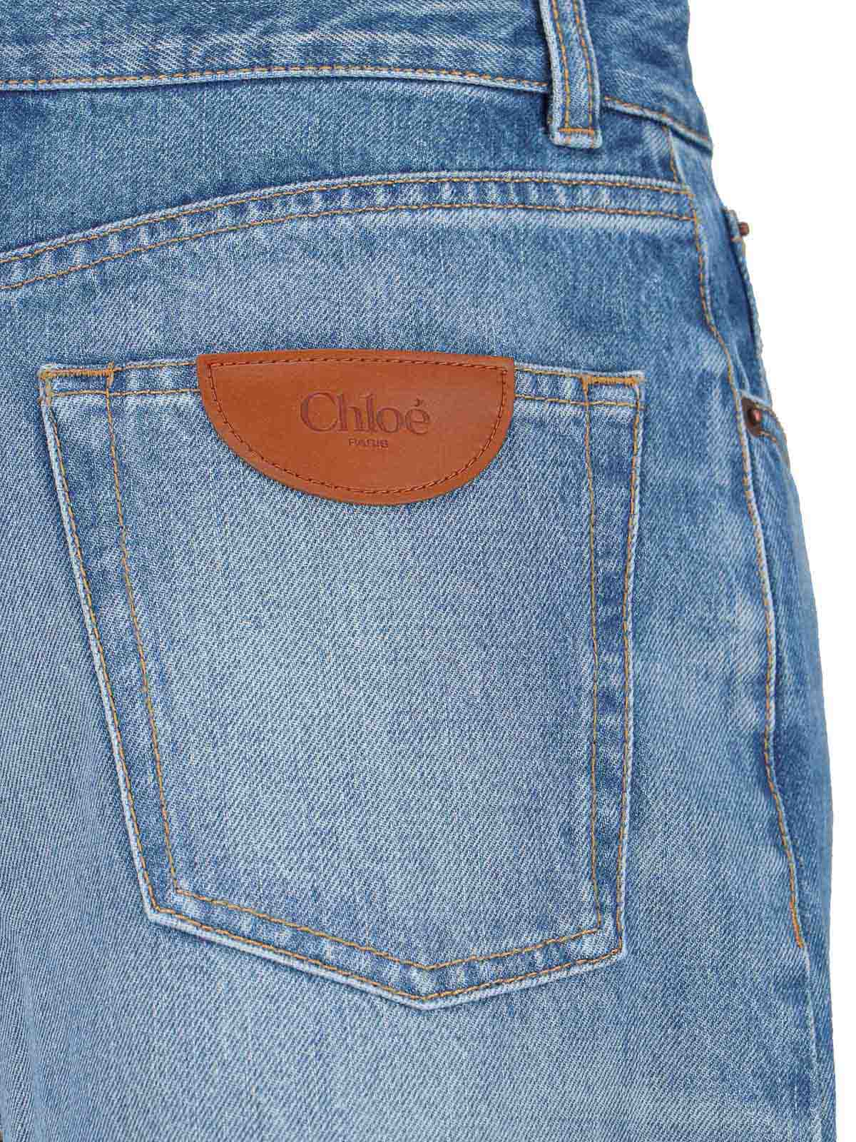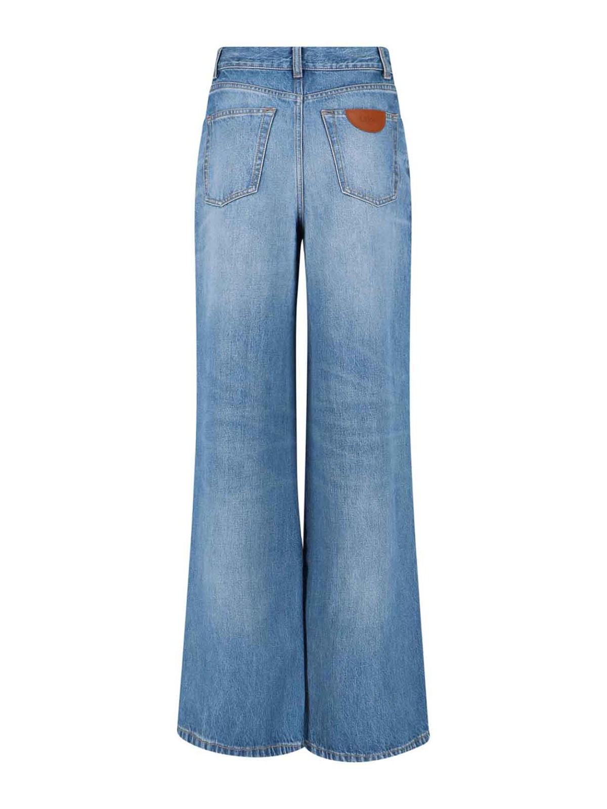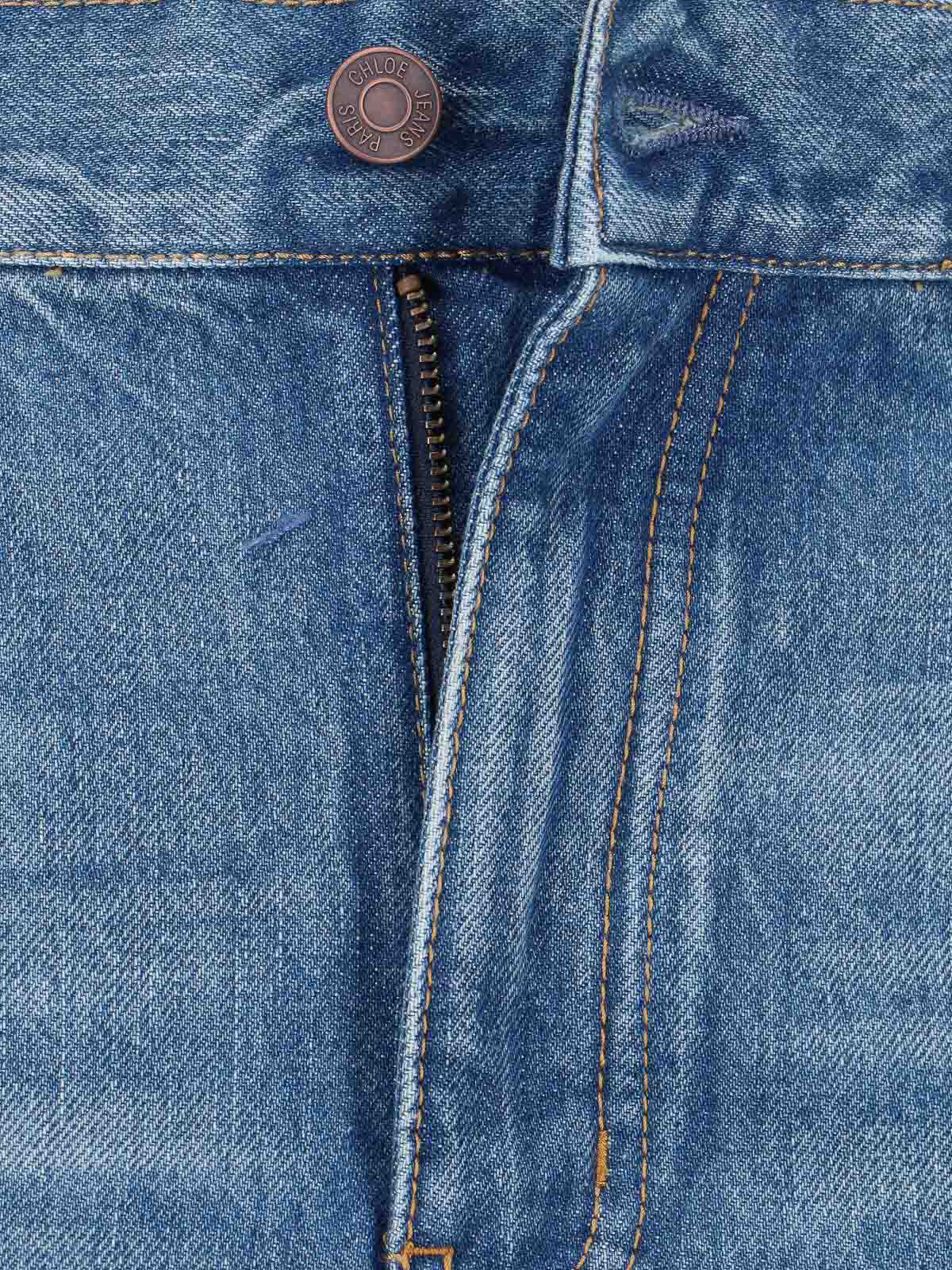 Flared chlo jeans in blue cotton denim, high waist, button and zip closure, belt loops, five pocket design, rear leather logo patch, flared leg.