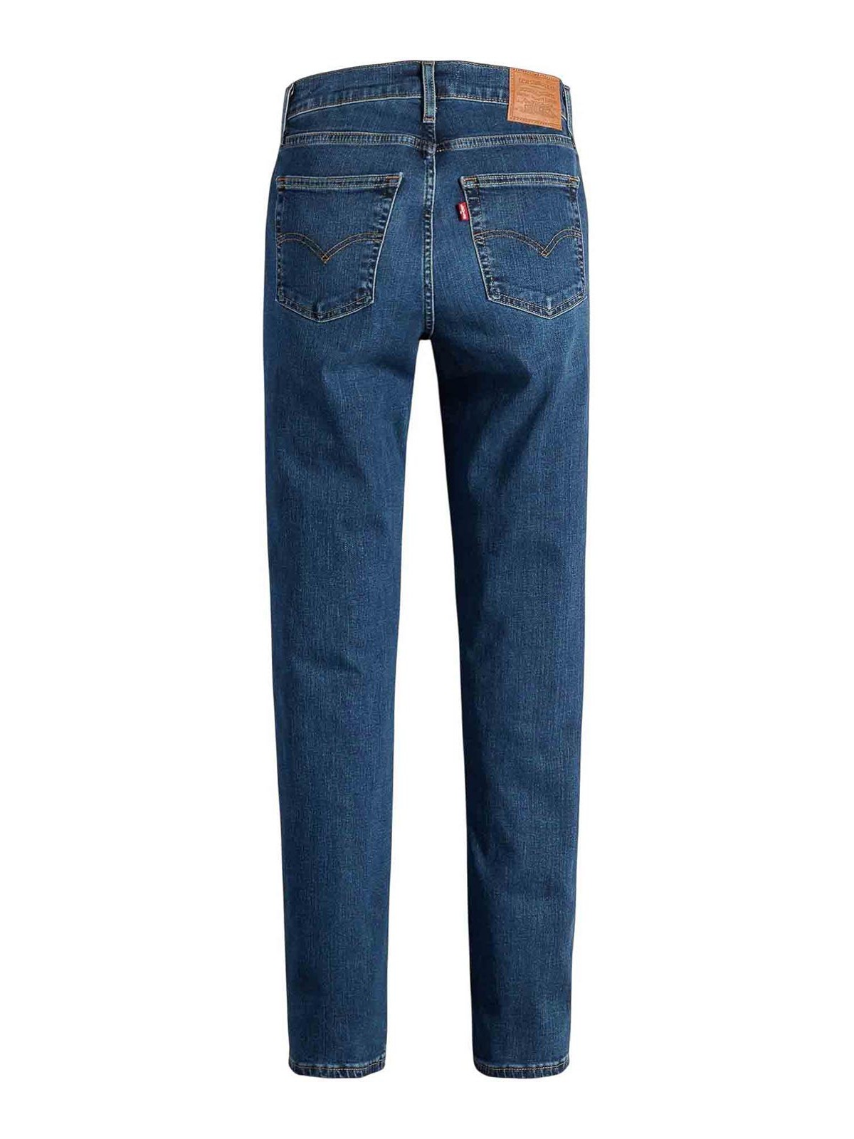 Levis high rise straight jeans tencel elastomultiestere and the high rise straight jeans offer an elegant straight silhouette that enhances the figure and guarantees daily comfort made of stellar stretch denim they combine the natural softness of tencel with the elasticity of elastomultiestere and ensuring a shaping and stable fit the high waist defines the waistline while the straight and clean line creates a lengthening effect the dark blue wave expresses a classic and versatile style ideal for casual or refined looks stretch stellar stretch high waist slim fit on hips and thighs straight line on the front leg with zip and button five classic pockets blue wave dark