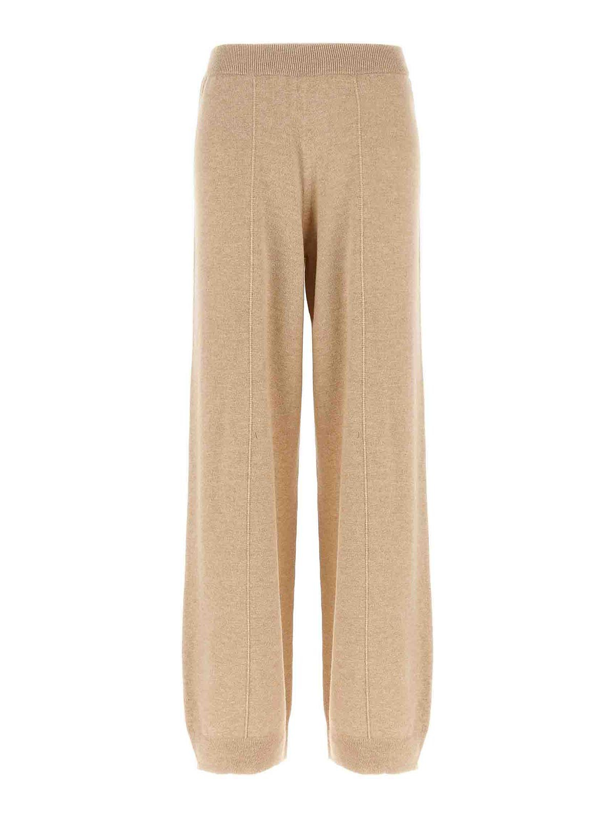 Wool, silk and cashmere blend trousers, elastic waistband with jewel detail at the back, wide and straight leg.