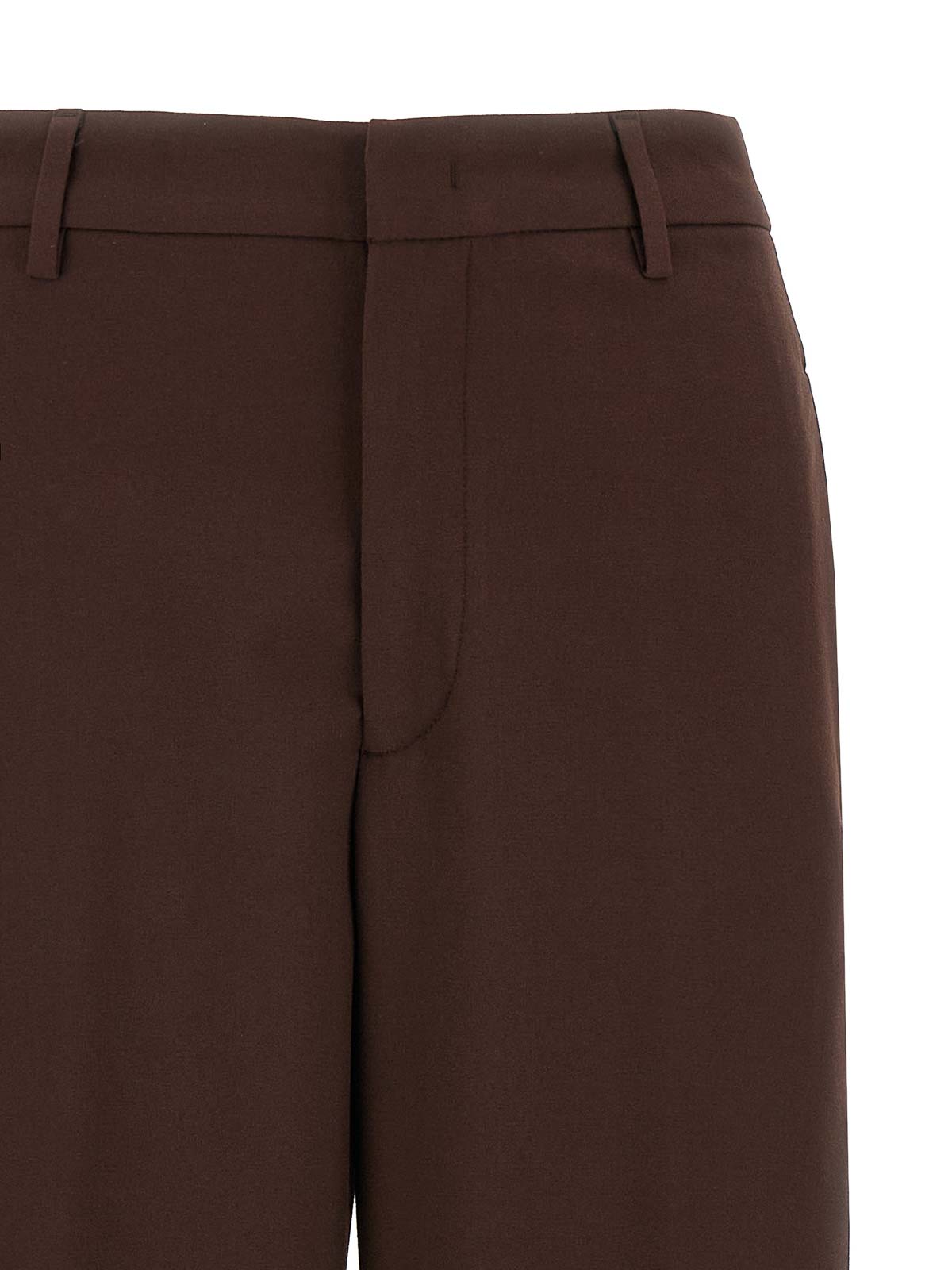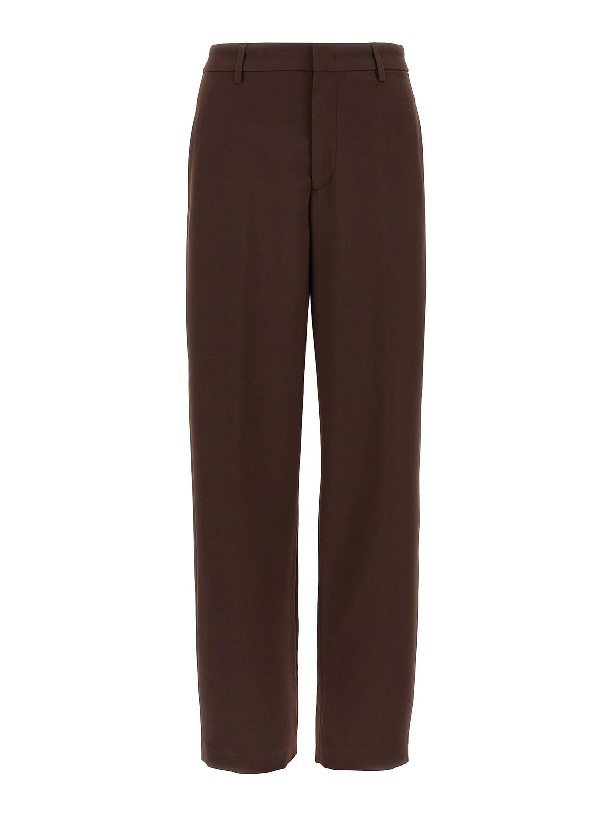 Viscose blend trousers, back jewel detail, front zip and hook closure, straight leg, pockets.