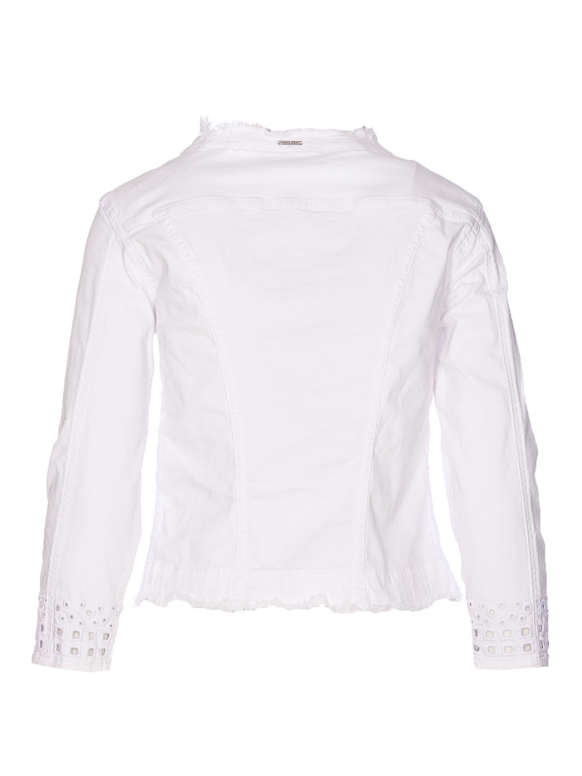 Liu jo white kate jacket with frontal buttons closure crewneck frontal jewels detail