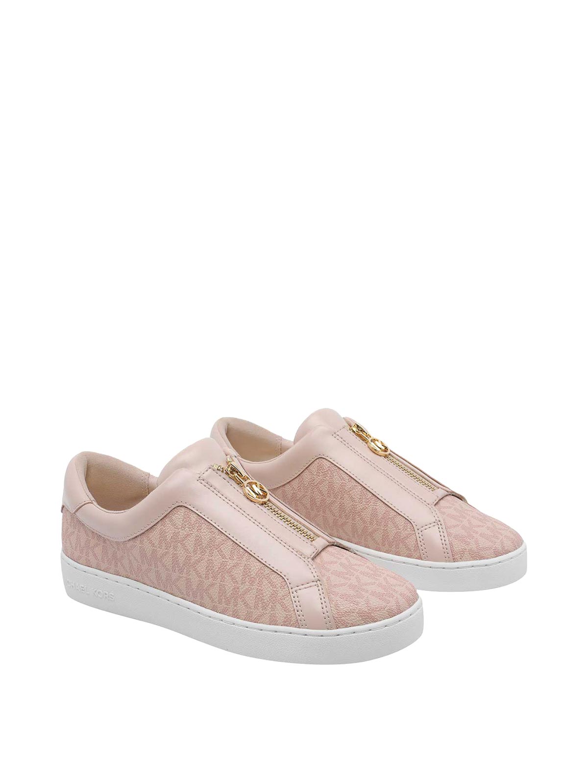 Michael michael kors pink hayes sneakers, round toe, platform model, frontal zip closure, logo allover