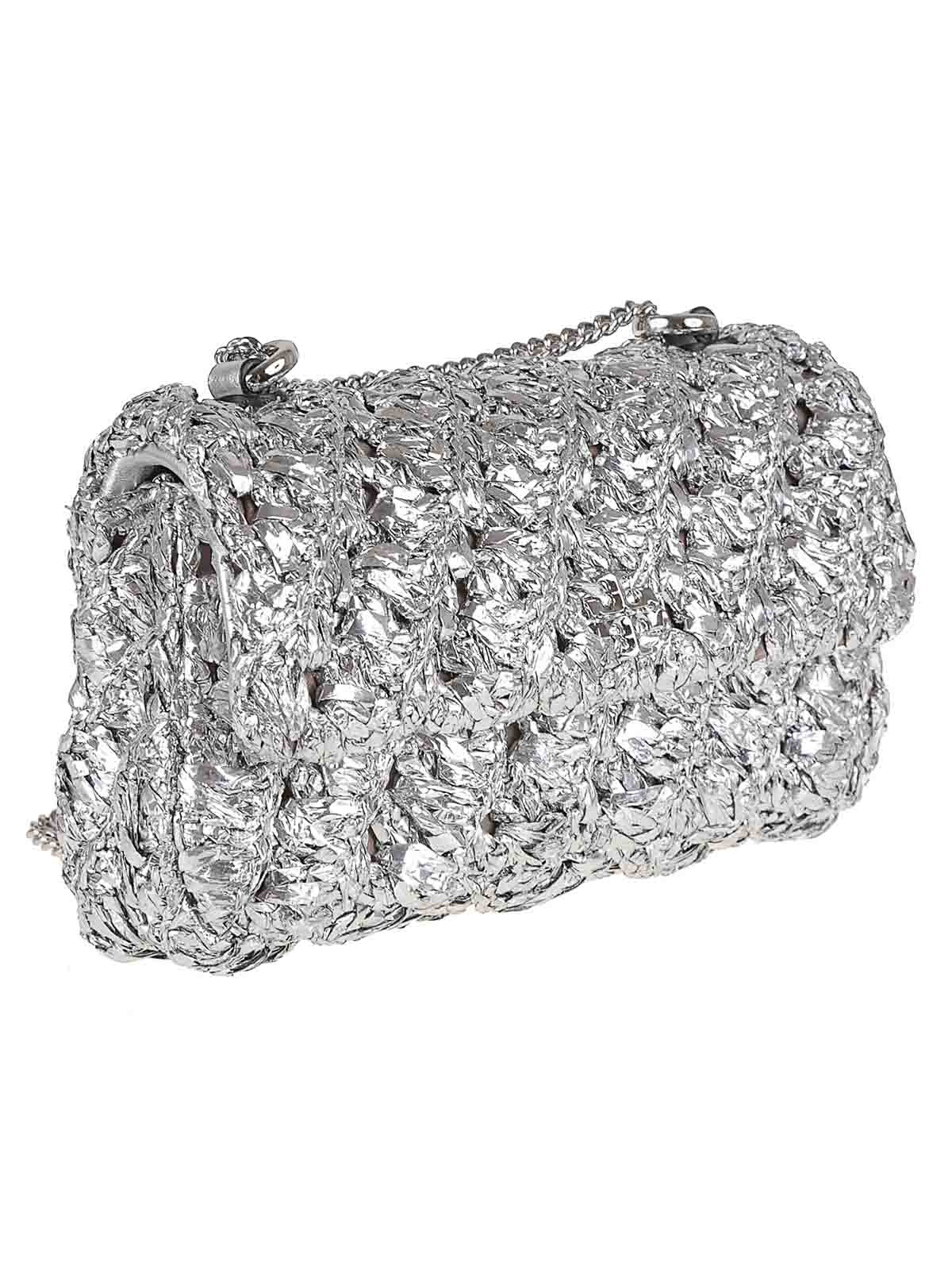 Mini Flap Bag Kira in metallic nylon hand -worked lengthening with Torry Bulch leather finishing, skate with magnetic closure