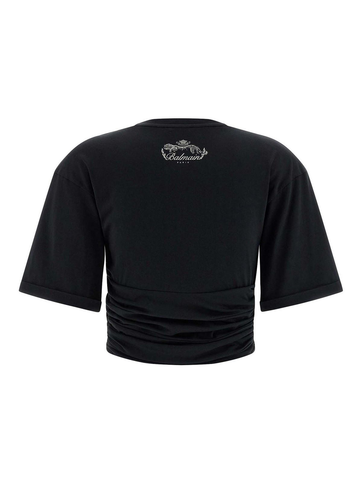 Balmain: t-shirts - Knotted Crop T-Shirt