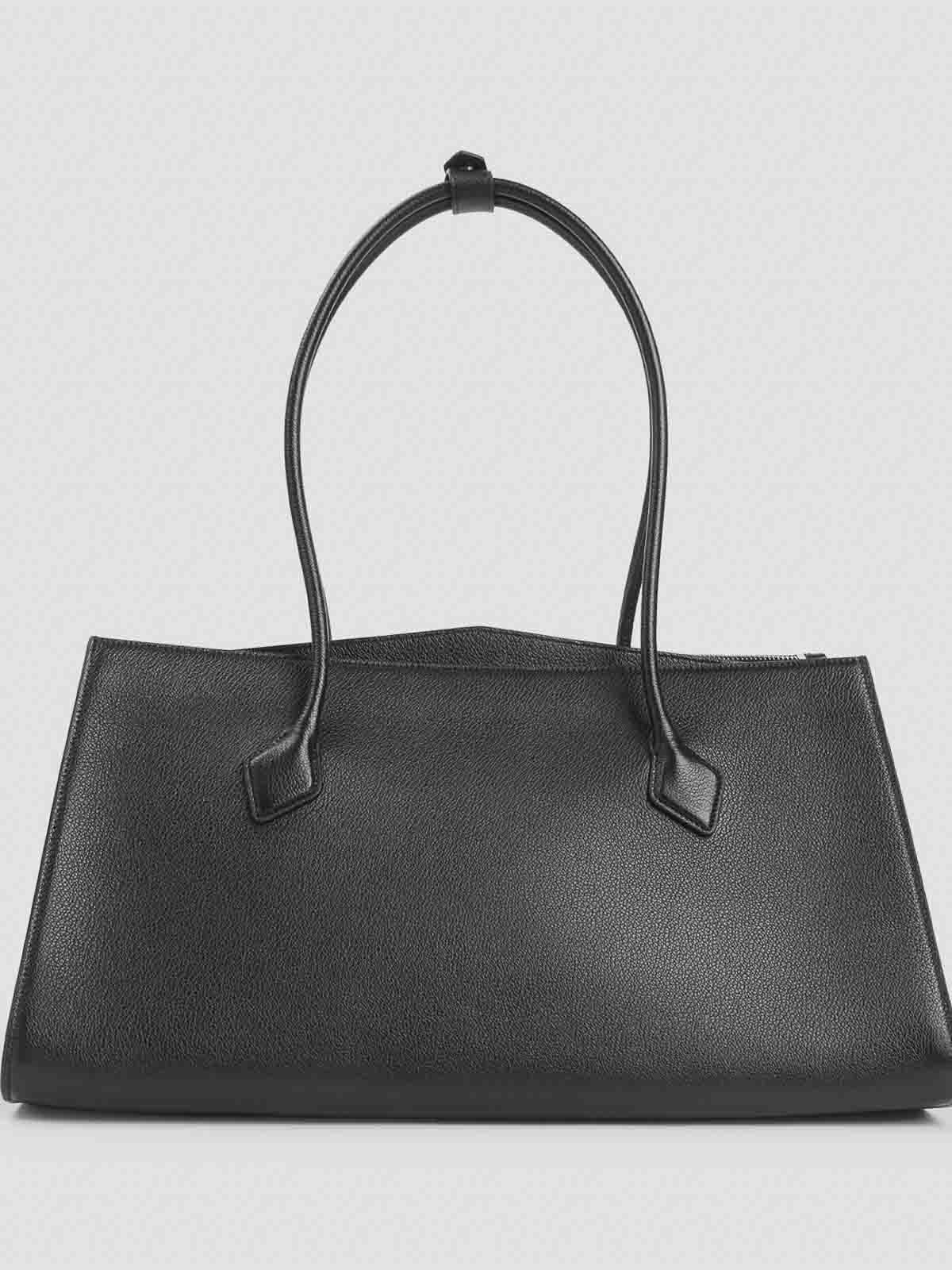 Alaa black grained le teckel tote bag pure black grained tote bag top handles top two, ways zipped side tonal logoed tag, tone lettering logo one main compartment, tone hardware