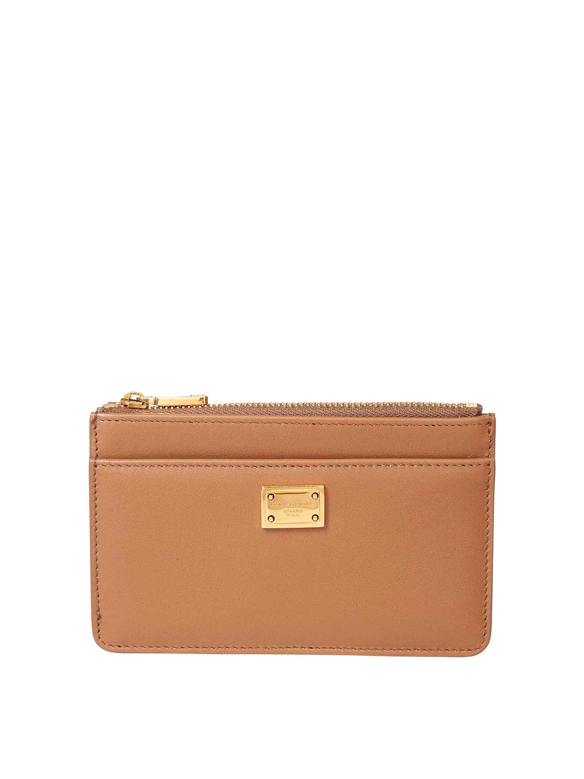 DOLCE & GABBANA: wallets & purses - Leather holder plonge caramel color