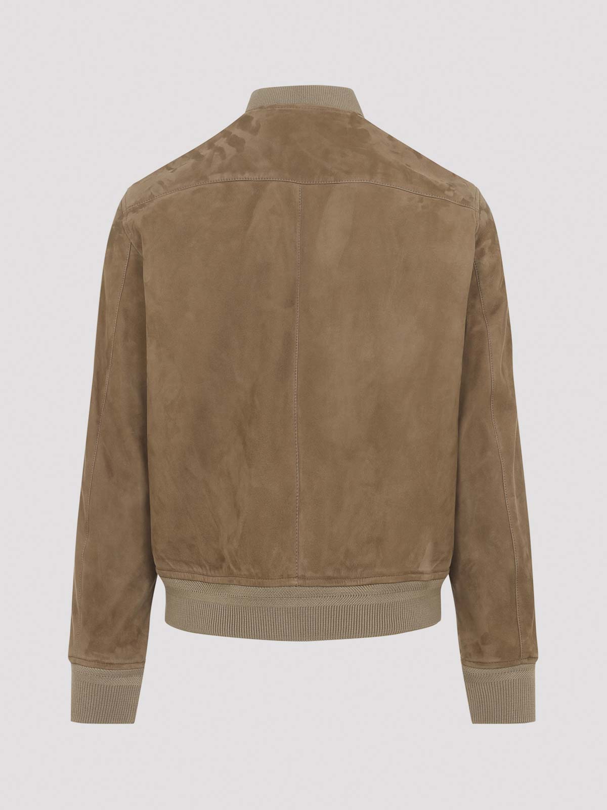 Tom ford beige leather jacket. crafted from dark beige suede leather, it features a bomber-style design, a round neckline, a two-way zip fastening, two front pockets, and long sleeves with a small zip pocket on the left sleeve. finished with ribbed edges and a full lining.