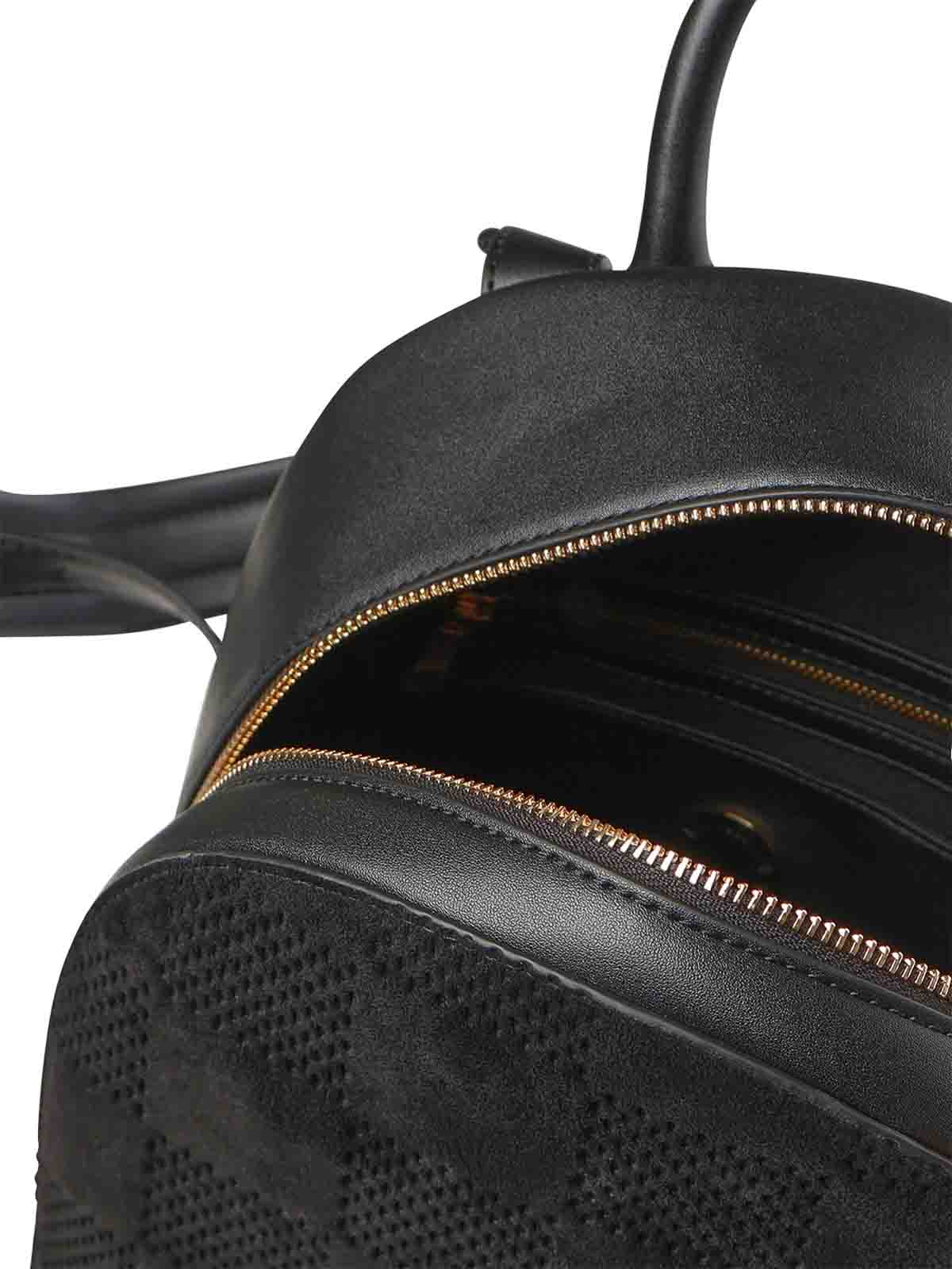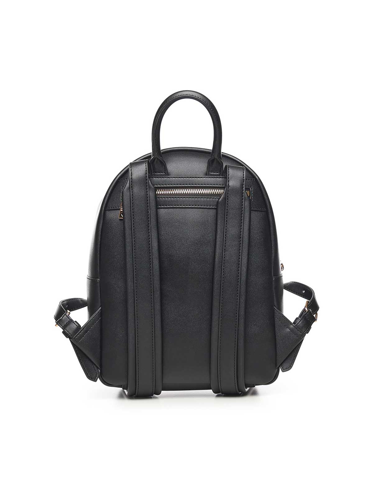zip closure at the top, adjustable shoulder straps, gold-plated lettering logo, zip pocket on the back, dimensions: 24 x 31 x 13 cm, color: black