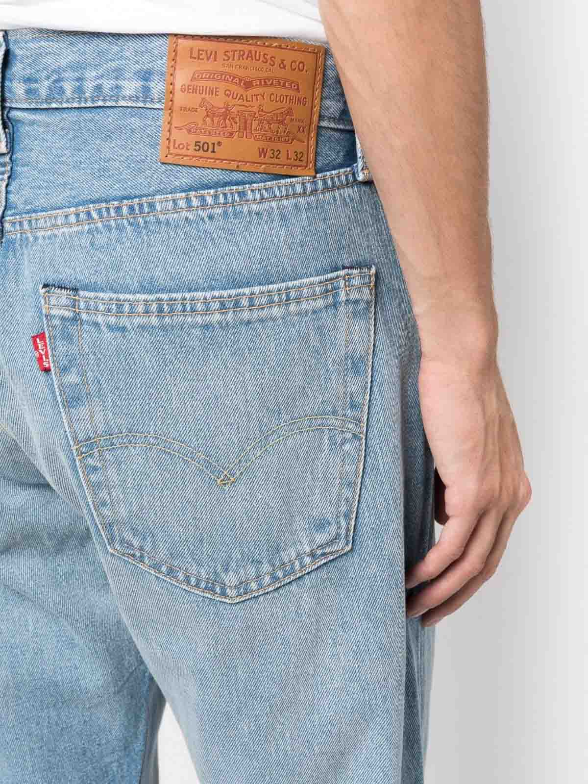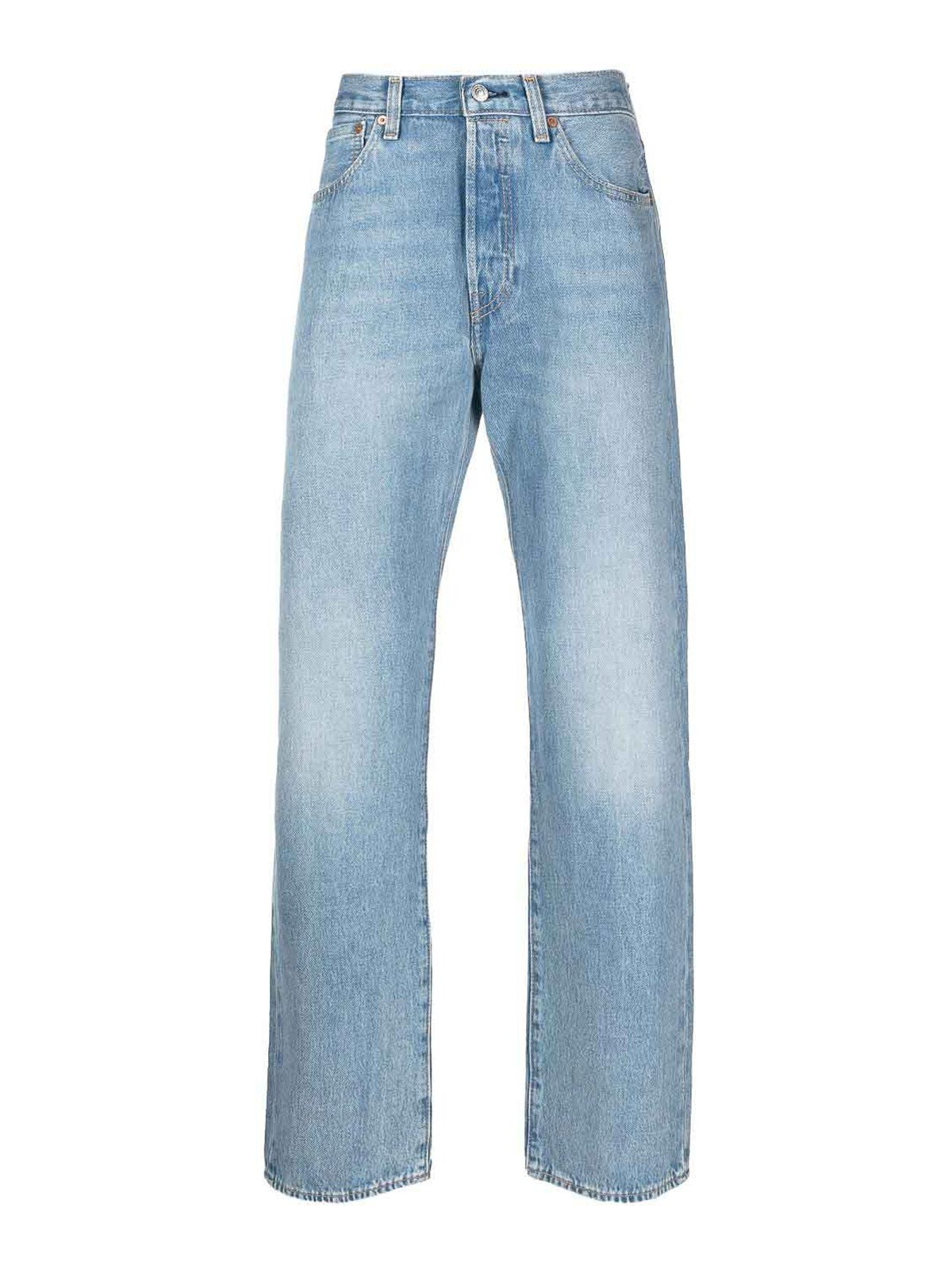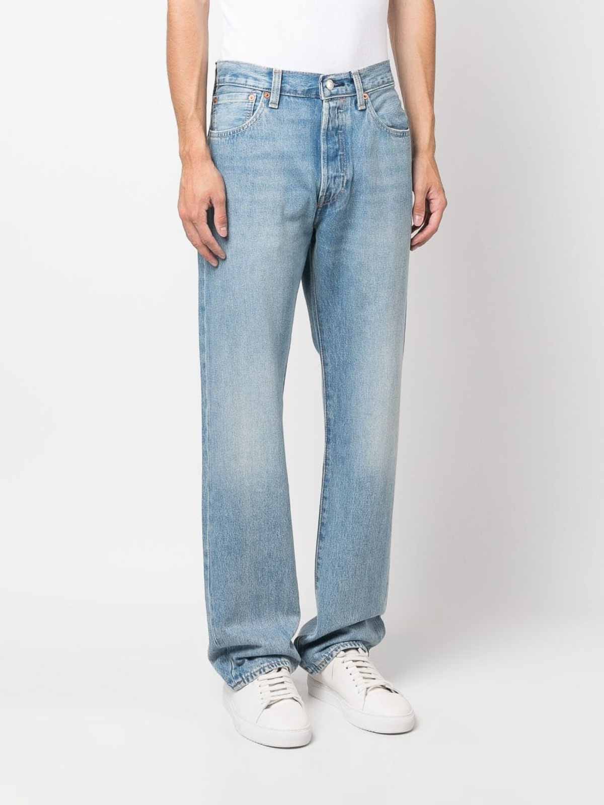 straight-leg jeans from levi's featuring light blue mid-rise button fly belt loops classic five pockets and straight leg